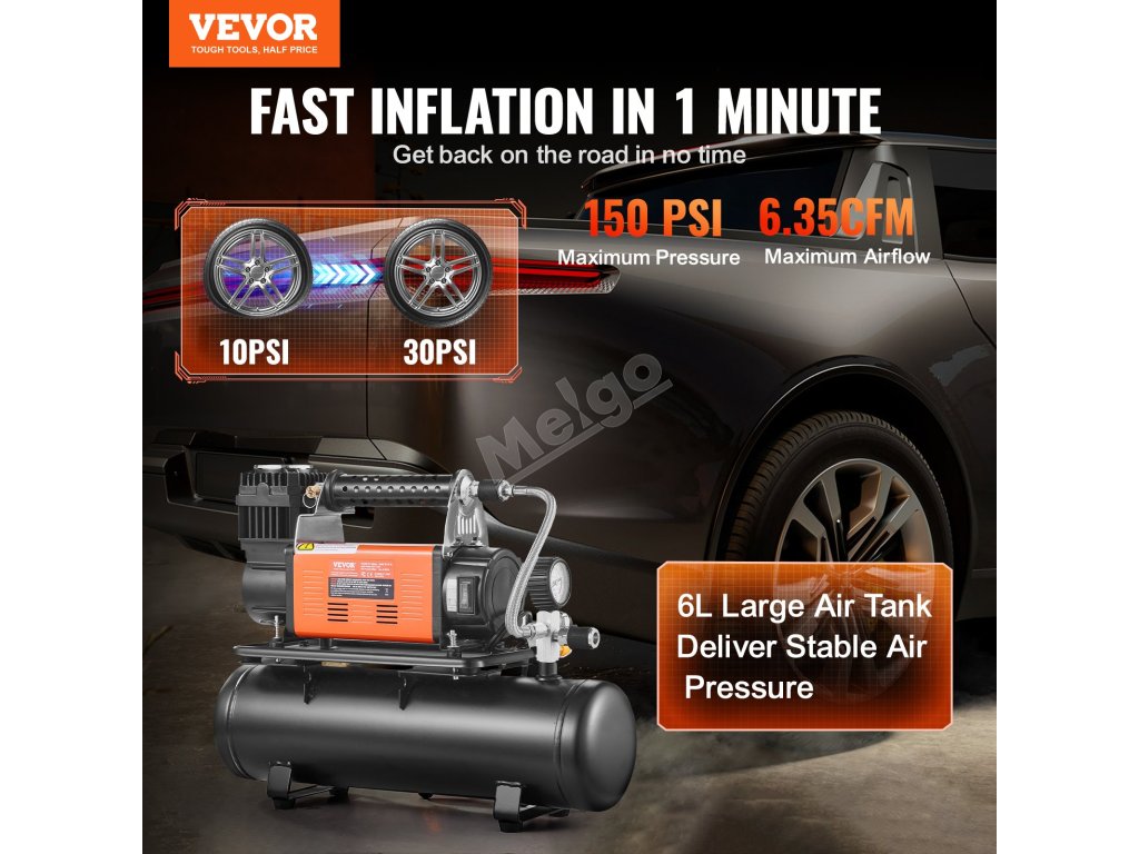 12V vzduchový kompresor do auta s 6L nádrží, 6.35 CFM, 150PSI