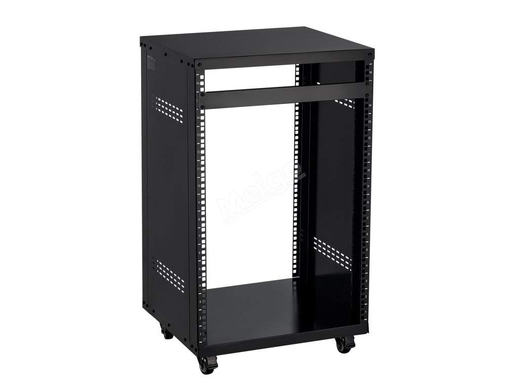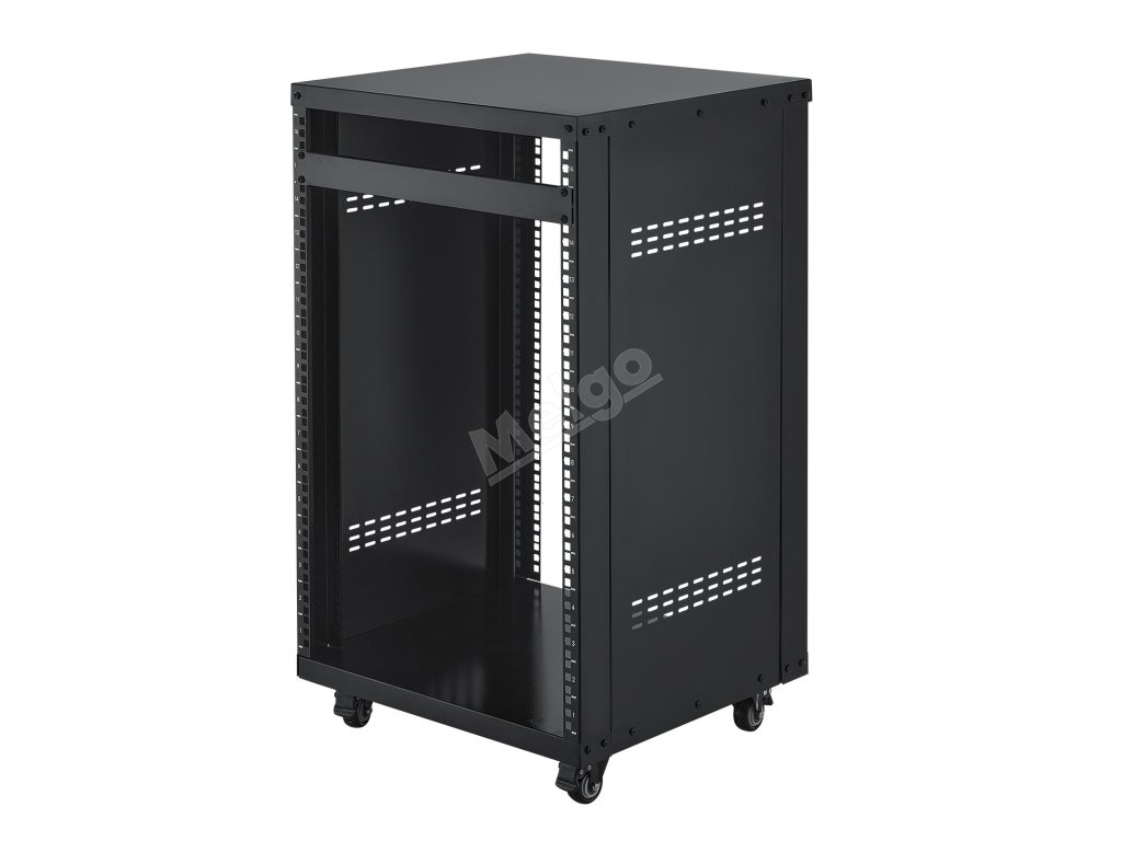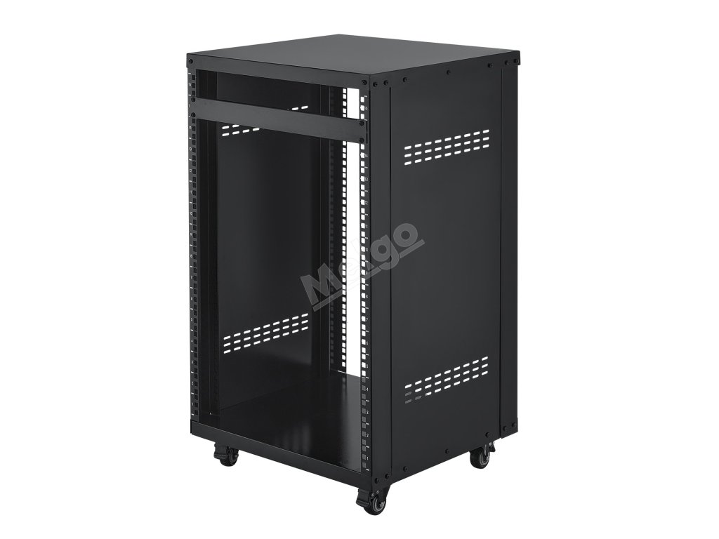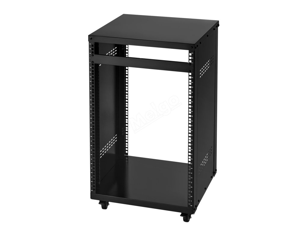 16U otevřený rack, 90.7 kg nosnost, uzamykatelná kolečka, pro av/it