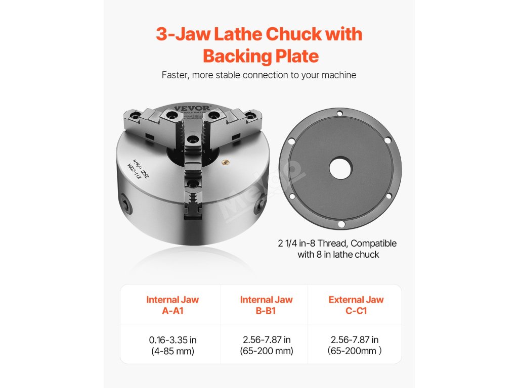 Naše soustružnické sklíčidlo s opěrnou deskou umožňuje rychlejší a stabilnější připojení stroje. Vyrobeno z prvotřídní litiny HT300, tvrdost čelistí ≥53 HRC pro mimořádnou odolnost. Samostředicí konstrukce poskytuje vysoce přesné upnutí od 0,16 do 7,87 palce s vnitřním průměrem 2,56 a vnějším průměrem 8 palců.
