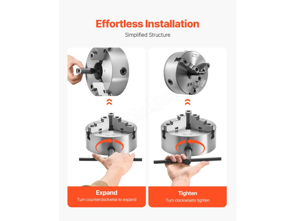 Toto samostředicí soustružnické sklíčidlo je určeno pro vnitřní i vnější upínání a splňuje různé potřeby obrábění, přičemž vám poskytuje efektivní a stabilní upínací výkon.