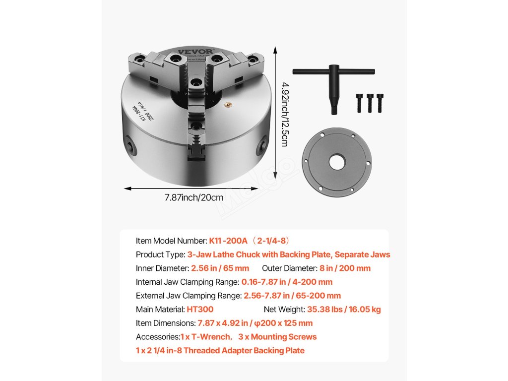 | Rozsah upínania vonkajších čeľustí | 2.56-7,87 palcov / 65-200 mm |