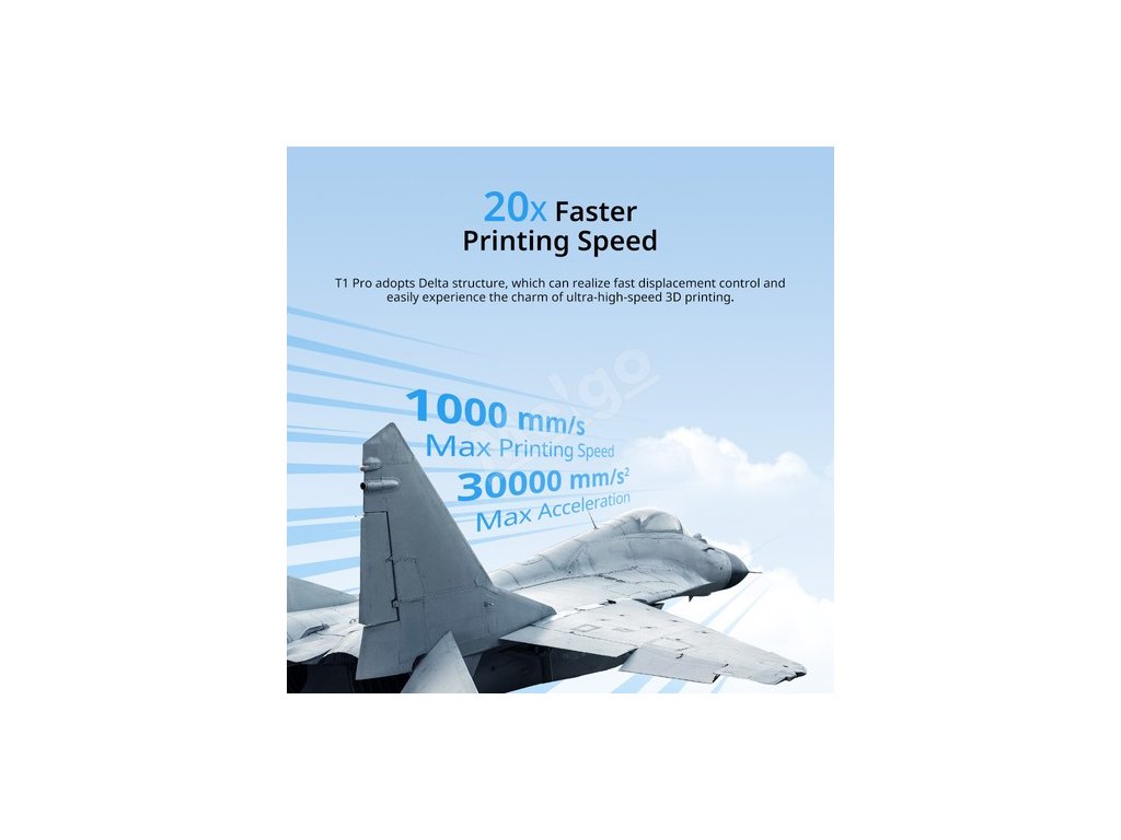 Tiskárna FLSUN T1 Pro Delta je vybavena vysoce výkonným řídicím čipem a vysokorychlostním chladicím tichým ventilátorem, který podporuje maximální rychlost 1000 mm/s a zrychlení 30 000 mm/s², takže si můžete vychutnat okamžitý vysokorychlostní tisk při zachování přesné kvality modelu.