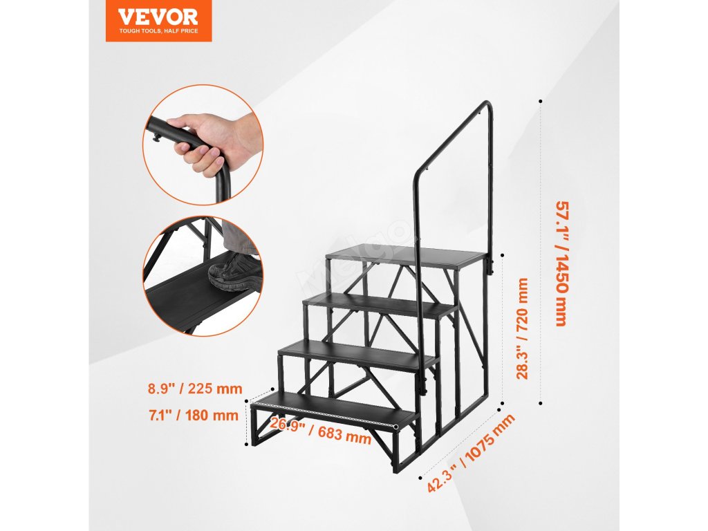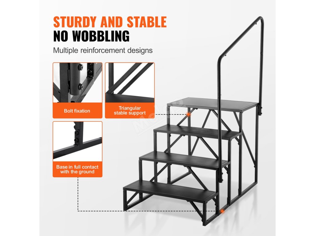 4-stupňové schody, nosnost 440 lbs/199.6 kg, s madlem, protiskluzové