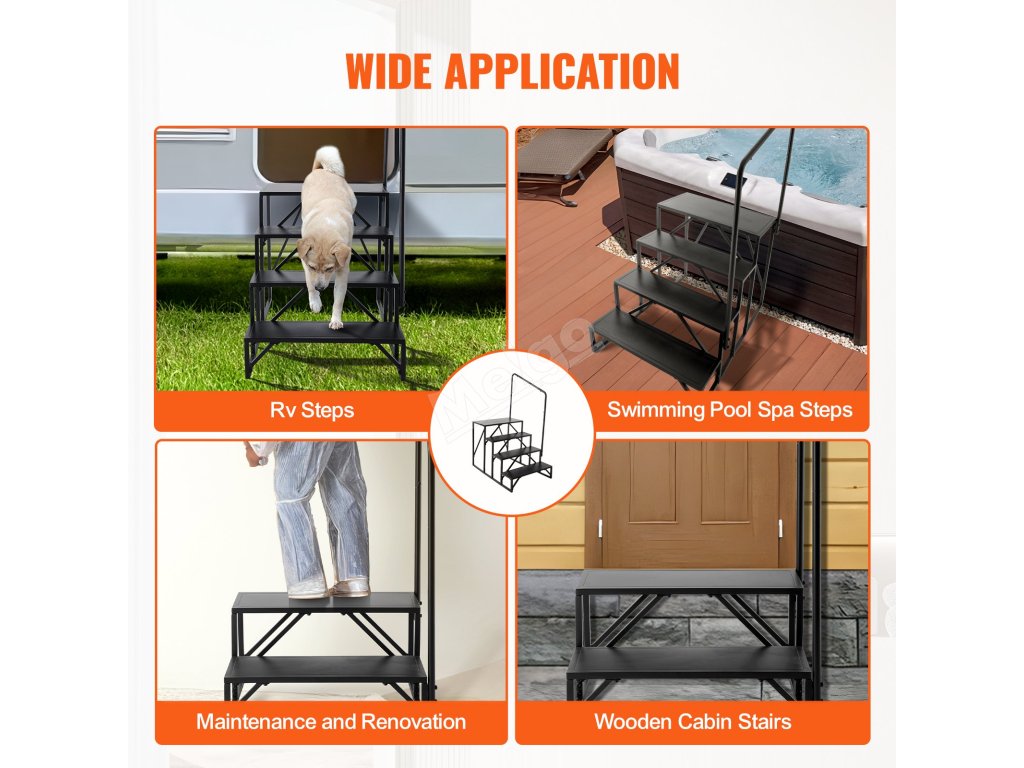 Nabízí stabilní a robustní schůdky pro snadný přístup do obytného vozu, které unesou až 440 kg. Vyrobeno z odolné legované oceli, která zajišťuje minimální deformaci a umožňuje přístup dvěma osobám najednou. Můžete jej použít k různým účelům, včetně vstupu a výstupu z obytného vozu, schůdků do kabiny nebo úložného prostoru a dalších.
