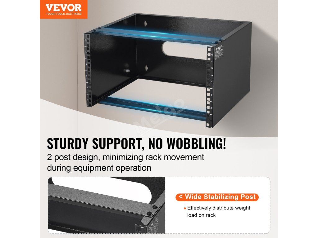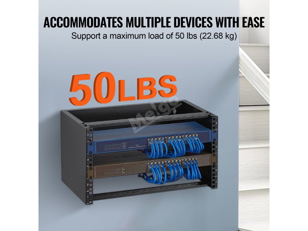 Náš nástěnný stojan má dvojitý stabilizační sloupek a robustní kovovou konstrukci, která unese až 22,7 kg, aby bylo vaše vybavení v bezpečí a uspořádané. Díky kompletnímu montážnímu příslušenství můžete snadno namontovat přepínače nebo jiné síťové vybavení přímo do stojanu!