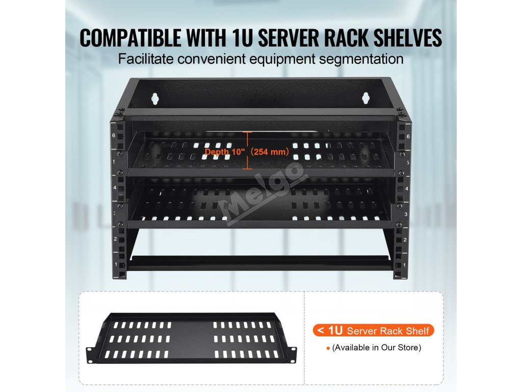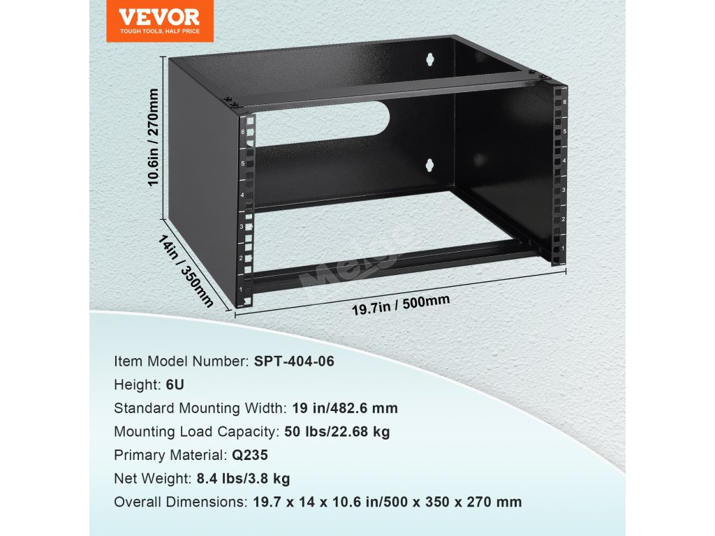 6U nástěnný rack hloubka 14 in/355.6 mm, nosnost 50lbs/22.68kg