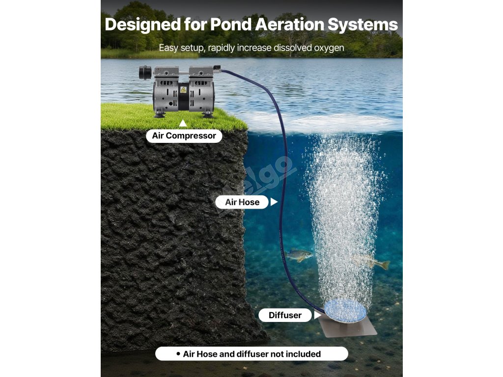 Náš jezerní provzdušňovač je ideální pro podvodní provzdušňovací systémy v jezerech o rozloze 1-3 akrů a hloubce 50 stop. Ve spojení s difuzory a hadicemi (nejsou součástí dodávky) zvýšíte množství rozpuštěného kyslíku, zlepšíte kvalitu vody, snížíte množství řas a minimalizujete tvorbu kalu.
