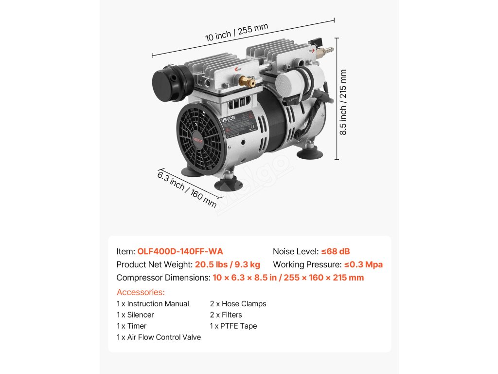 | Rozměry kompresoru | 10 × 6,3 × 8,5 palce / 255 × 160 × 215 mm |