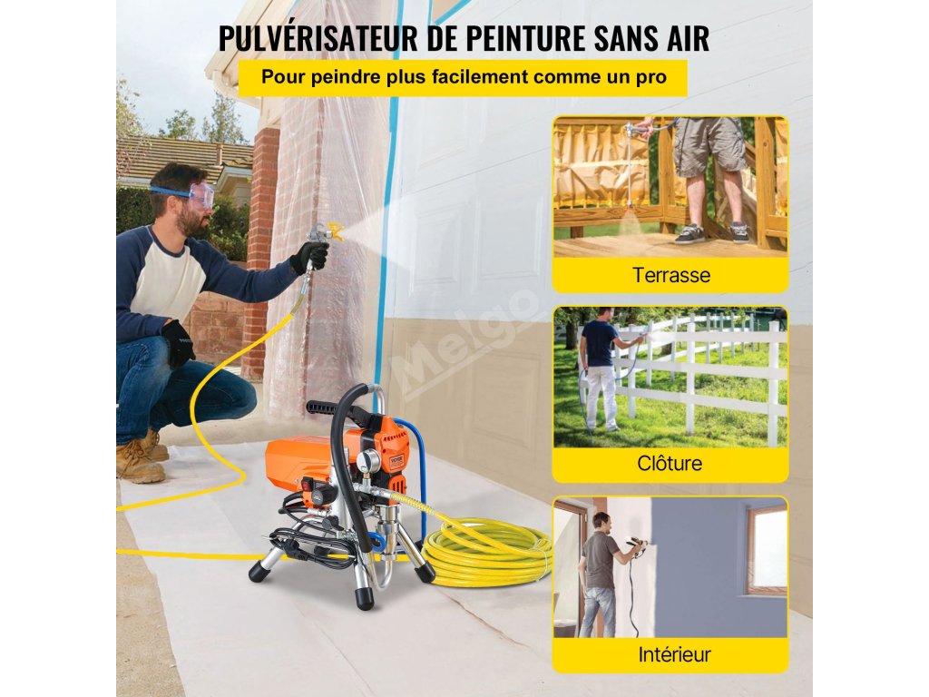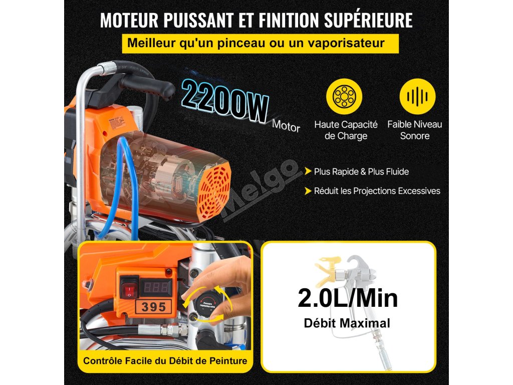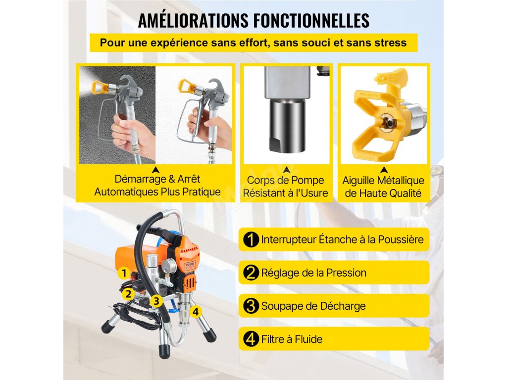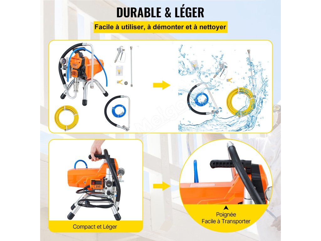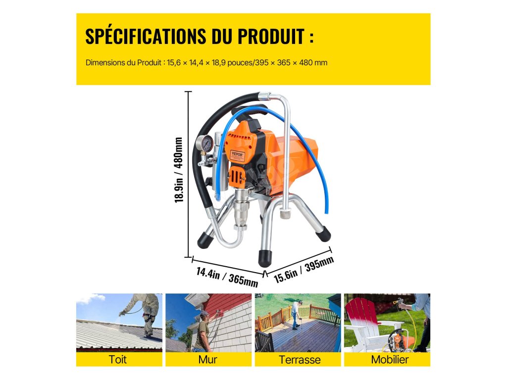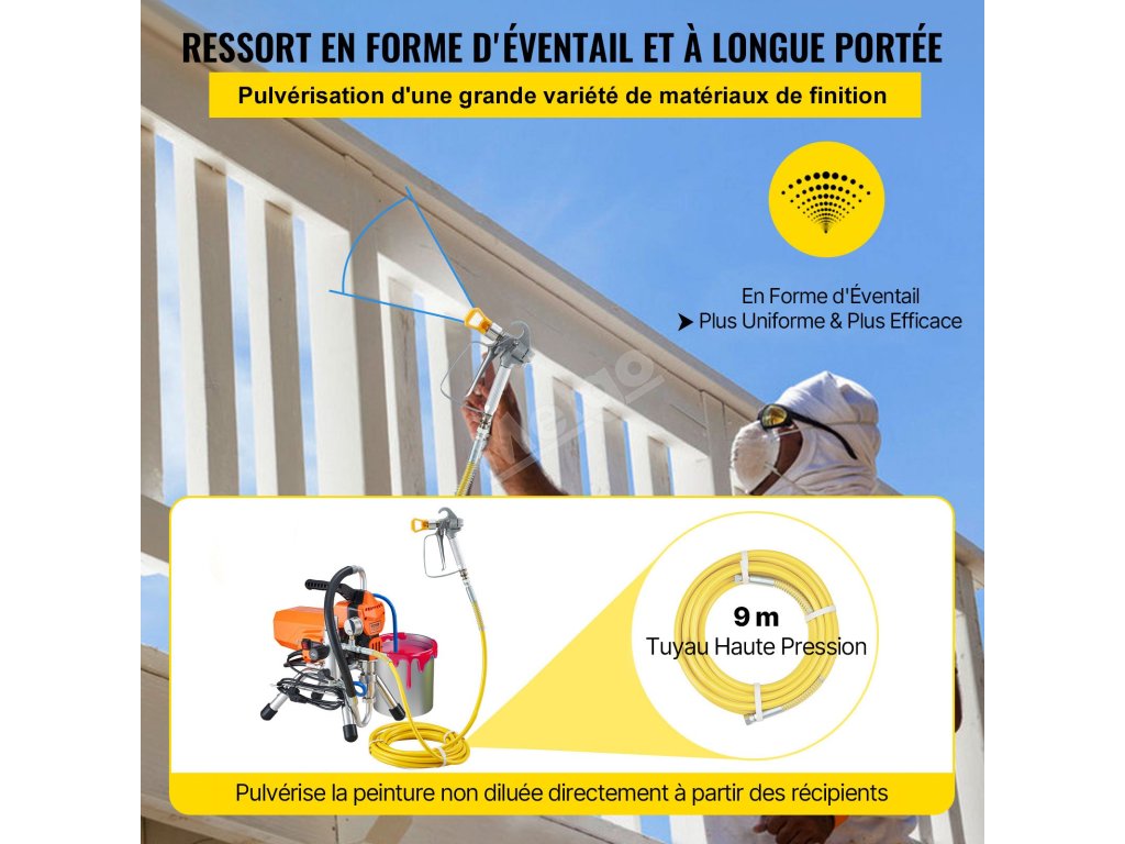 Tento profesionální stříkací stroj je vybaven prvotřídním motorem a poskytuje jemný povrch jako z výroby. Bezvzduchová technologie dokáže zajistit komplexní pokrytí a minimální přestřik.