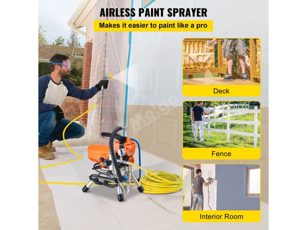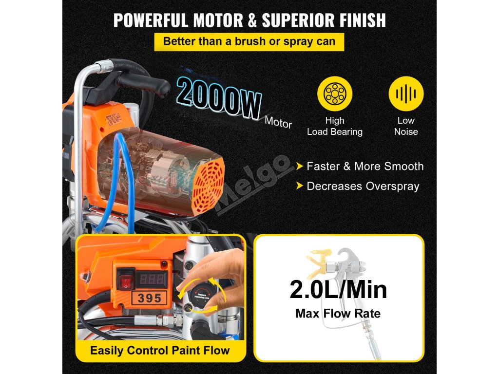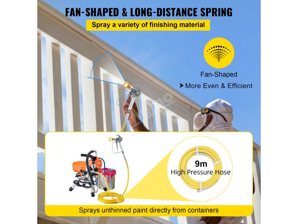 Tento profesionální stříkací stroj s prvotřídním motorem zajišťuje jemnou povrchovou úpravu jako v továrně. Bezvzduchová technologie zaručuje rozsáhlé pokrytí a minimální přestřik.