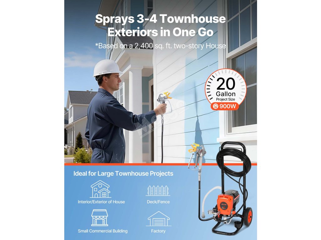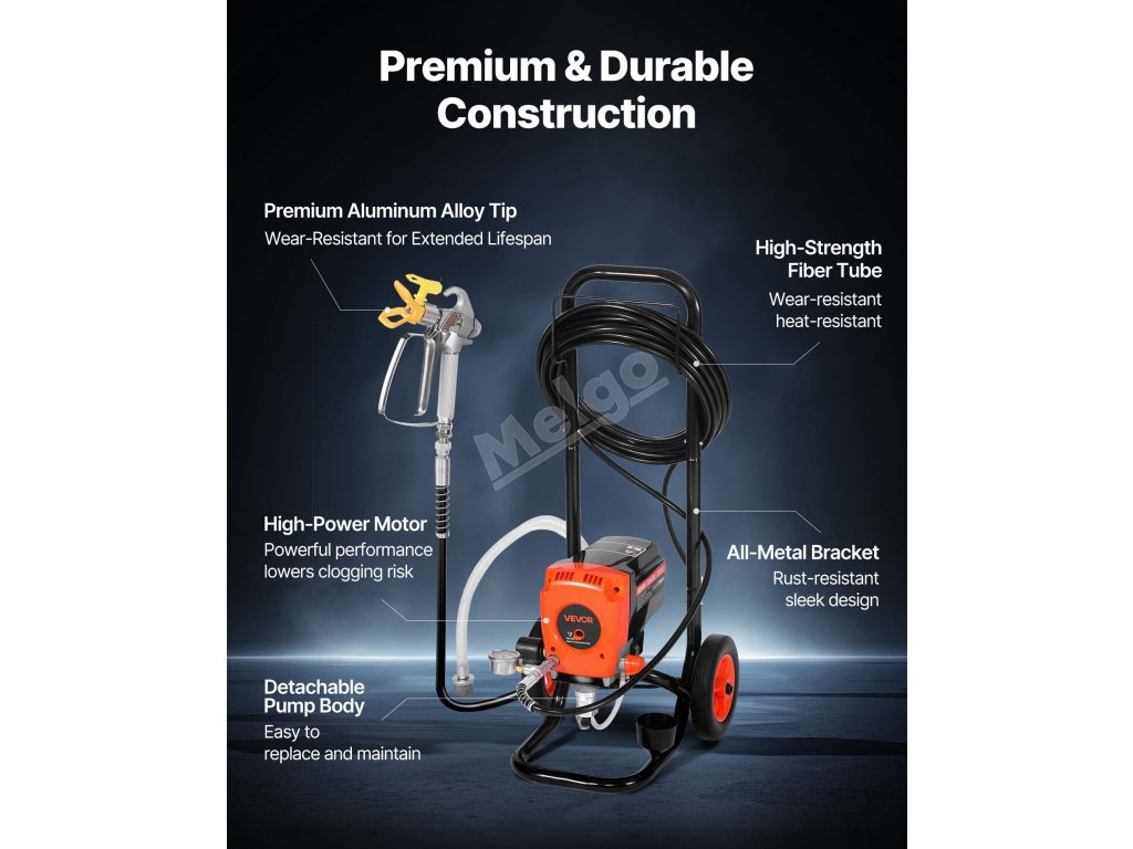 Airless stříkací přístroj 900W, 3300PSI s vozíkem, hadicí a tryskami