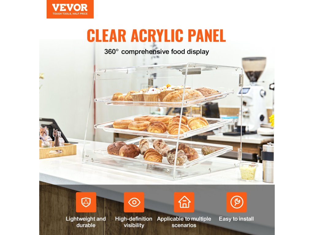 Akrylová cukrářská vitrína 3 úrovně zadní dvířka 52.6×36.1×41.4cm