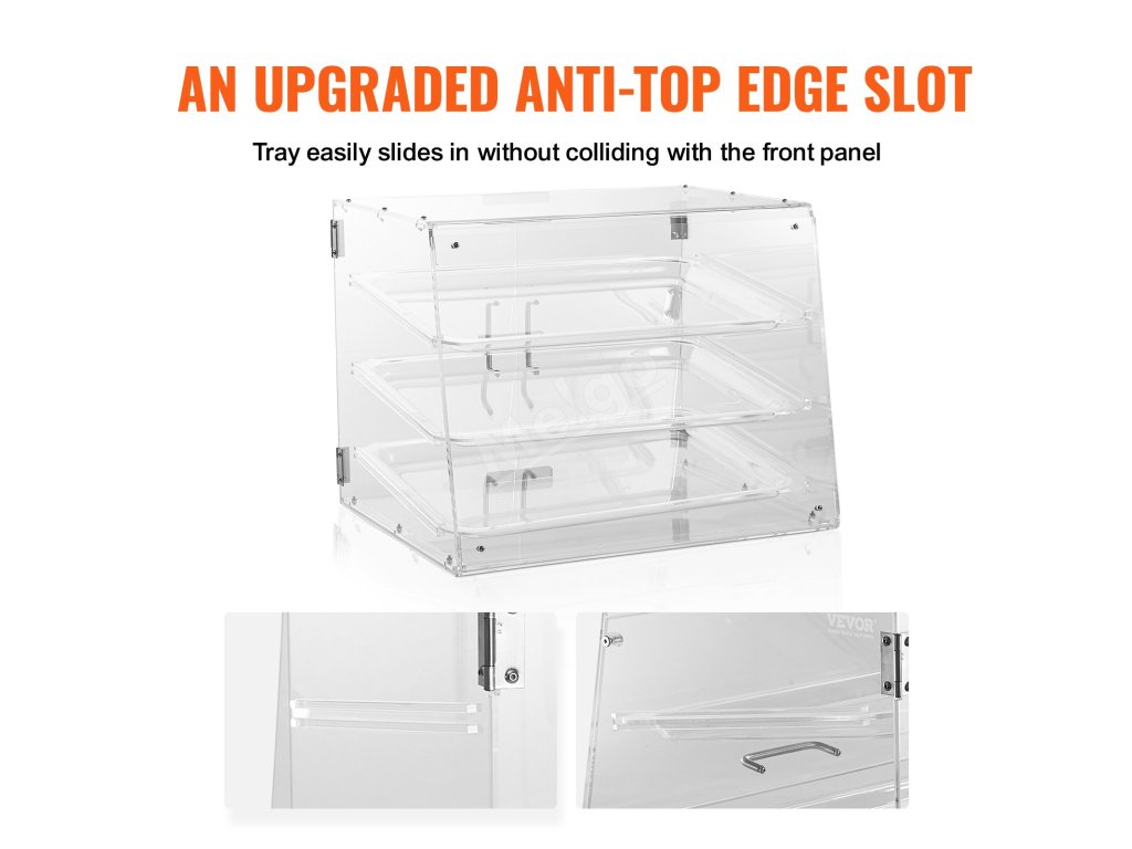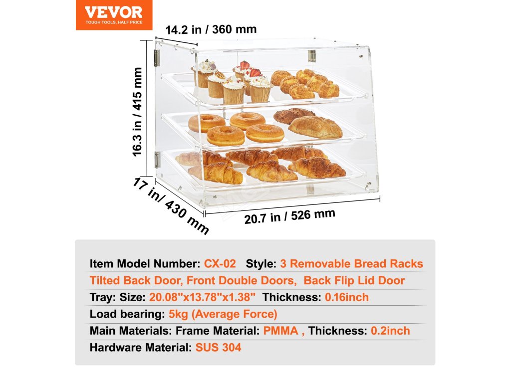 Křišťálově průhledný akrylový rám umožňuje zřetelnější zobrazení vašeho pečiva, což zákazníkům usnadňuje výběr různých pečených sladkostí, které mohou pomoci zvýšit chuť zákazníků ke konzumaci. Vylepšený podnos je pevnější a odolnější, s delší životností.