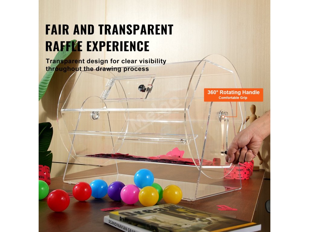 Náš pečlivě vyrobený tombolový buben v sobě spojuje odolnost, eleganci a velkou kapacitu. Je odolný proti opotřebení a roztržení a bez námahy pojme velké množství losů nebo pingpongových míčků. Průhledný design zajišťuje naprostou náhodnost a transparentnost v celém procesu tomboly.