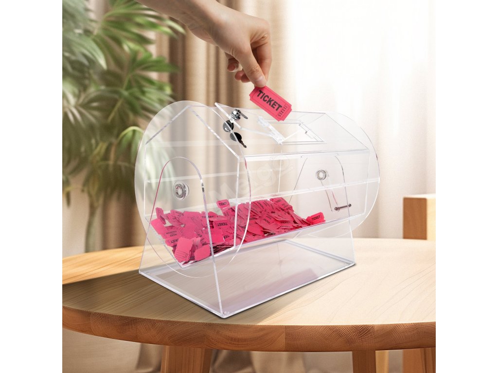 Akrylový buben na losování, průhledný, 10 000 lístků/300 kuliček