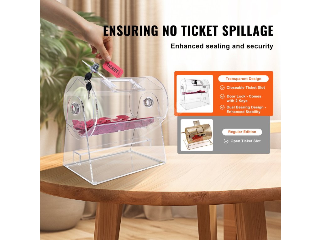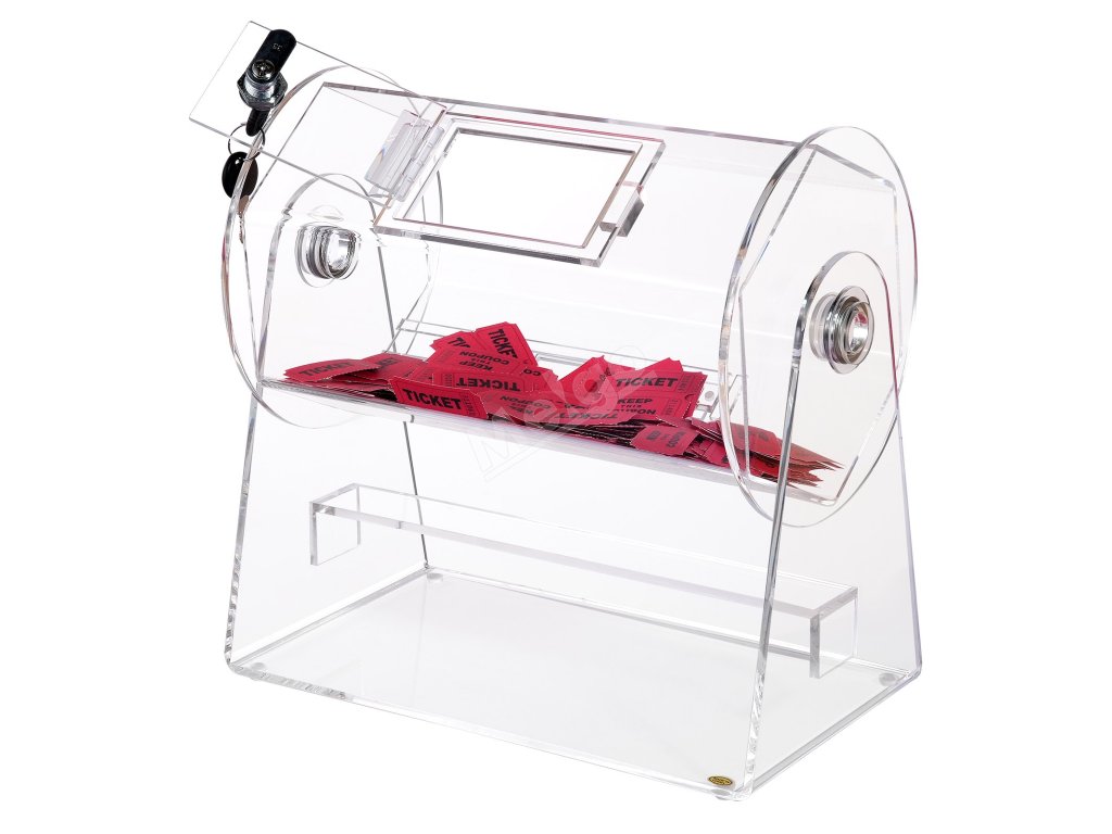 Náš buben na tombolové lístky je vyroben z vysoce kvalitního akrylu, který je známý svou odolností proti roztržení, opotřebení a roztříštění. Konstrukce s dvojitým ložiskem zajišťuje hladší a pohodlnější losování a poskytuje stabilitu a rovnováhu během losování.