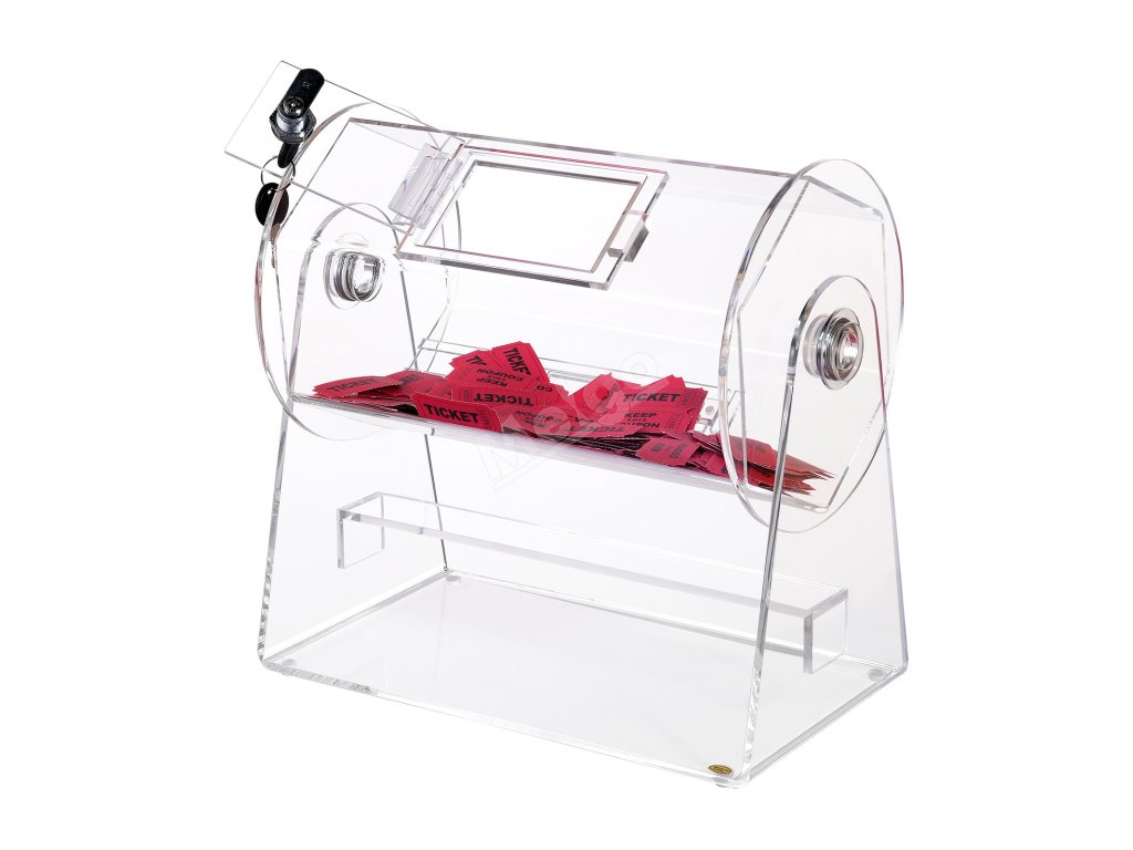 Akrylový buben na tombolu průhledný 2500 losů/100 kuliček 2 klíče