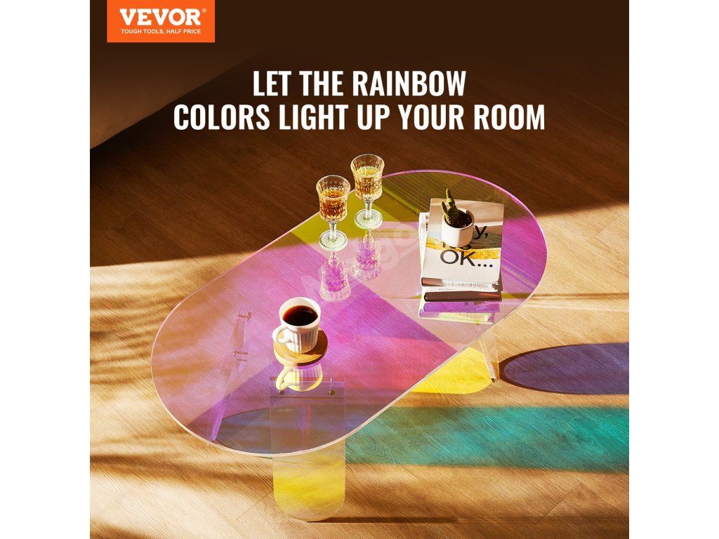 Tento duhový akrylový konferenční stolek je vyroben z přírodního akrylového materiálu a vyznačuje se působivou odolností proti nárazu, přičemž jeho tvrdost je 16krát vyšší než u běžného tvrzeného skla. Spojuje v sobě estetický vzhled i praktičnost.