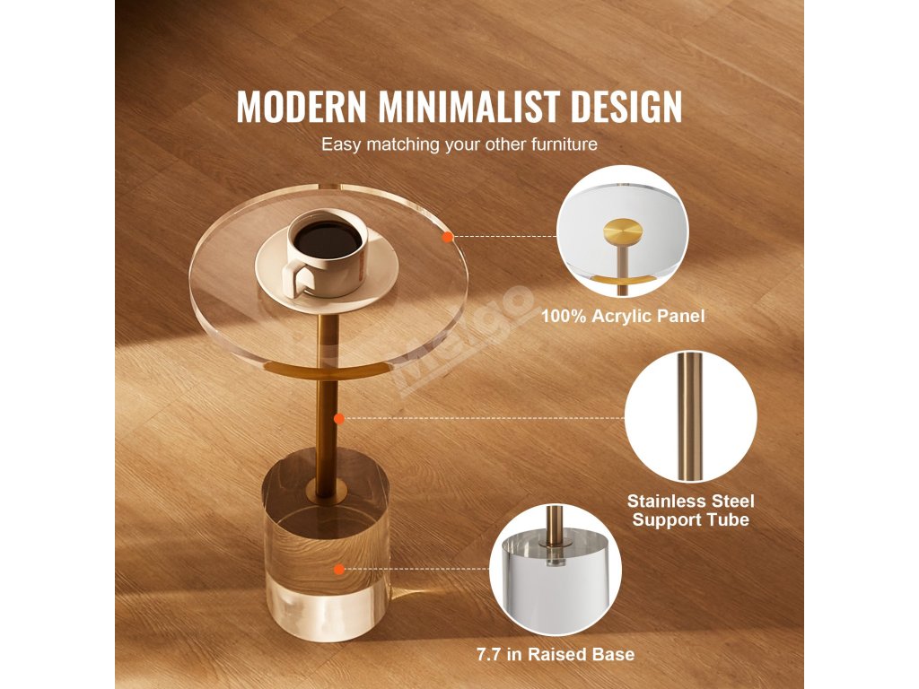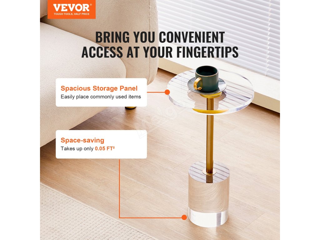 Náš akrylový koncový stolek s výškou 21,4 palce/543 mm kolem vás vytvoří malý úložný prostor. Zajistěte si pohodlný přístup k věcem, které máte po ruce!