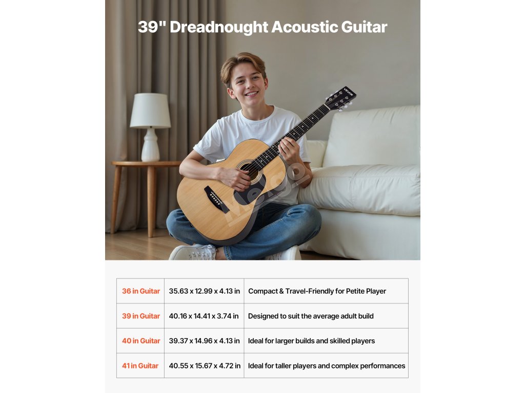 39 v Dreadnought akustická kytara pro dospělé začátečníky