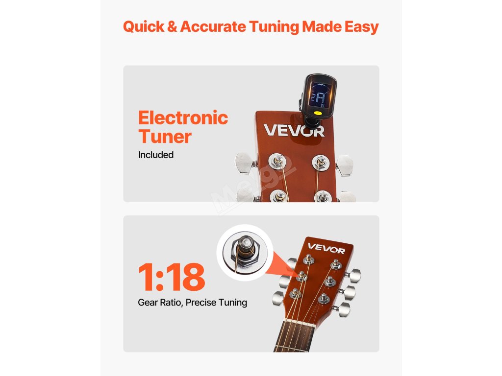 Tato akustická kytara má standardní velikost, vyvážený tón a pohodlný úchop pro snadné hraní. Je ideální pro začátečníky i cvičence a zaručuje radostný a bezproblémový hudební zážitek.