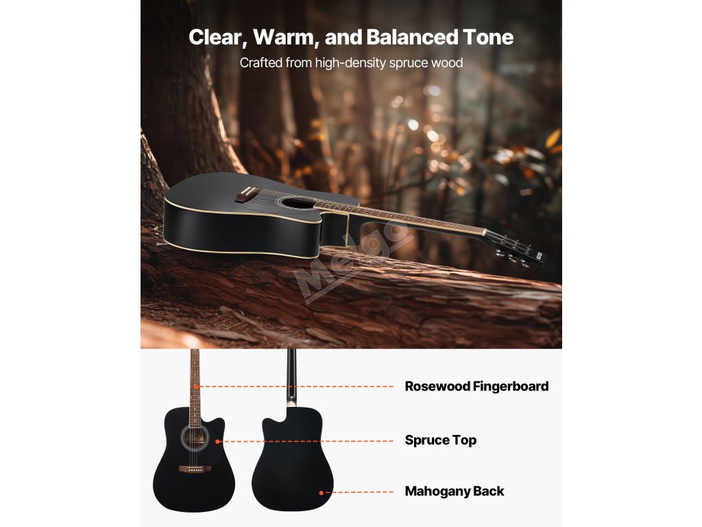 Tato akustická kytara má standardní velikost, vyvážený tón a pohodlný úchop pro snadné hraní. Je ideální pro začátečníky i cvičence a zaručuje radostný a bezproblémový hudební zážitek.