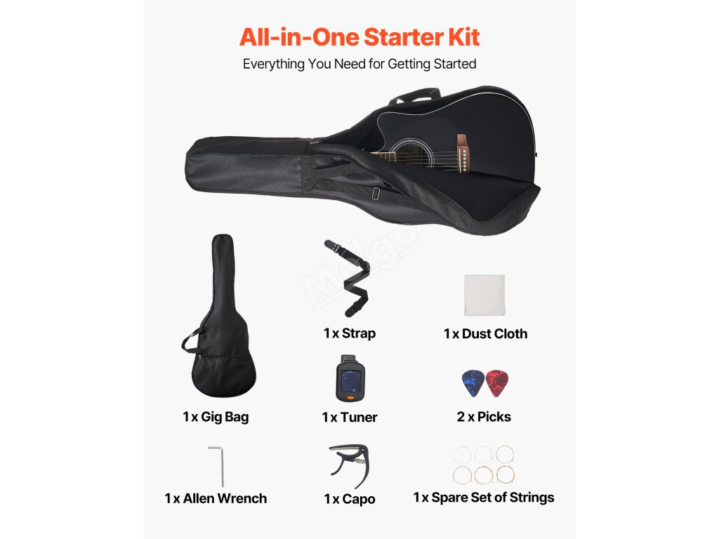 Akustická kytara cutaway 1041 mm (41 in) sada s pouzdrem černá