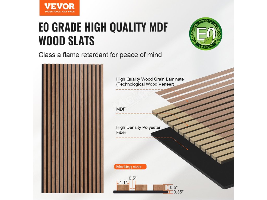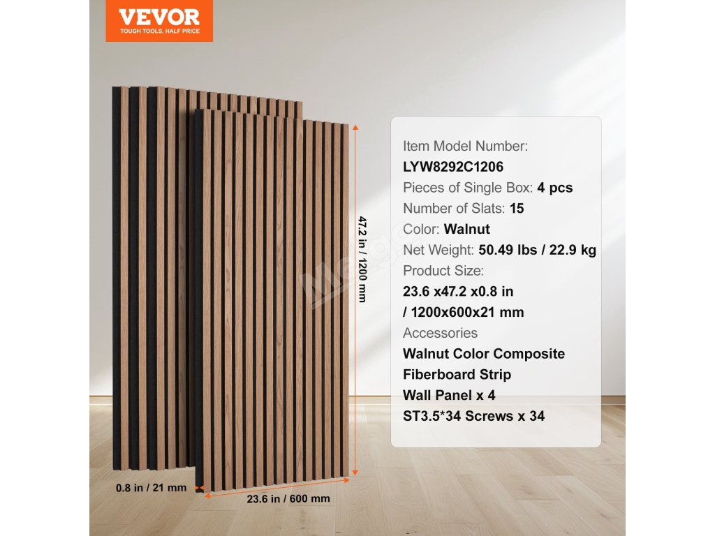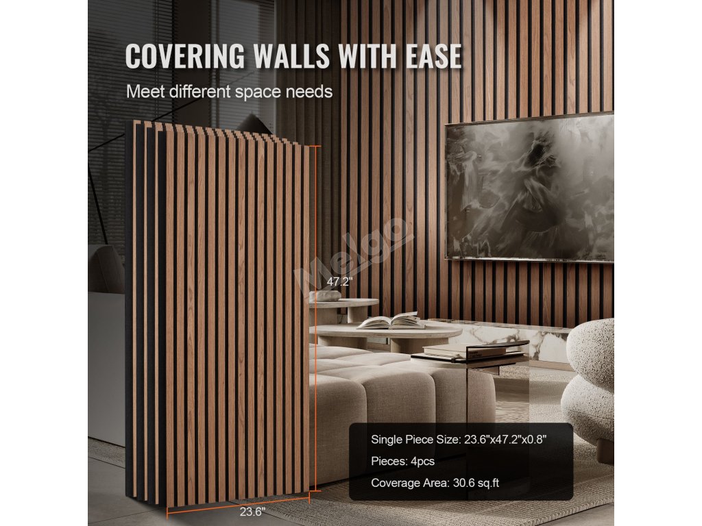 Akustické dřevěné lamelové panely na zeď, mdf, 23.6×47.2 inch, ořech