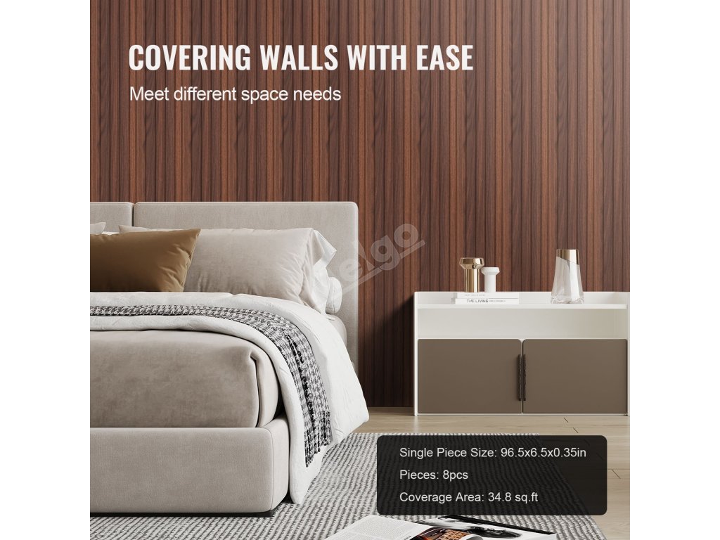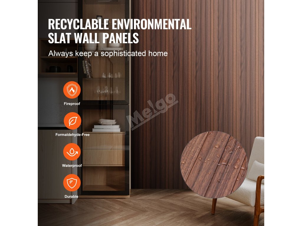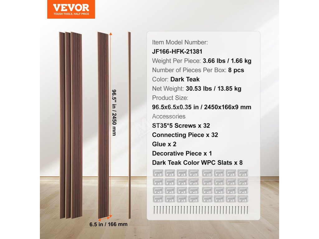 Akustické lamelové panely 8 ks 96×6 inch na stenu WPC tmavý teak
