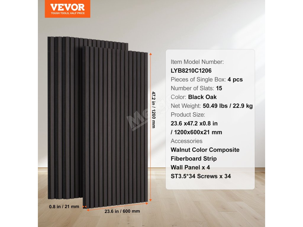 Akustické lamelové panely mdf 23.6×47.2" černý dub pro snížení hluku
