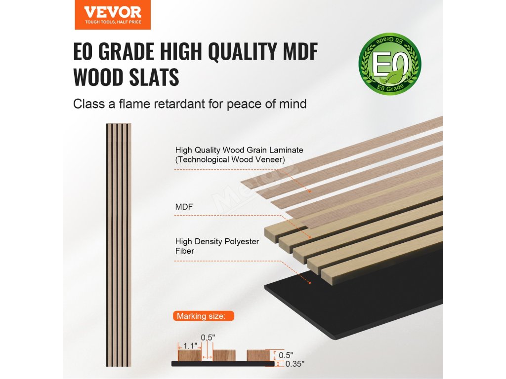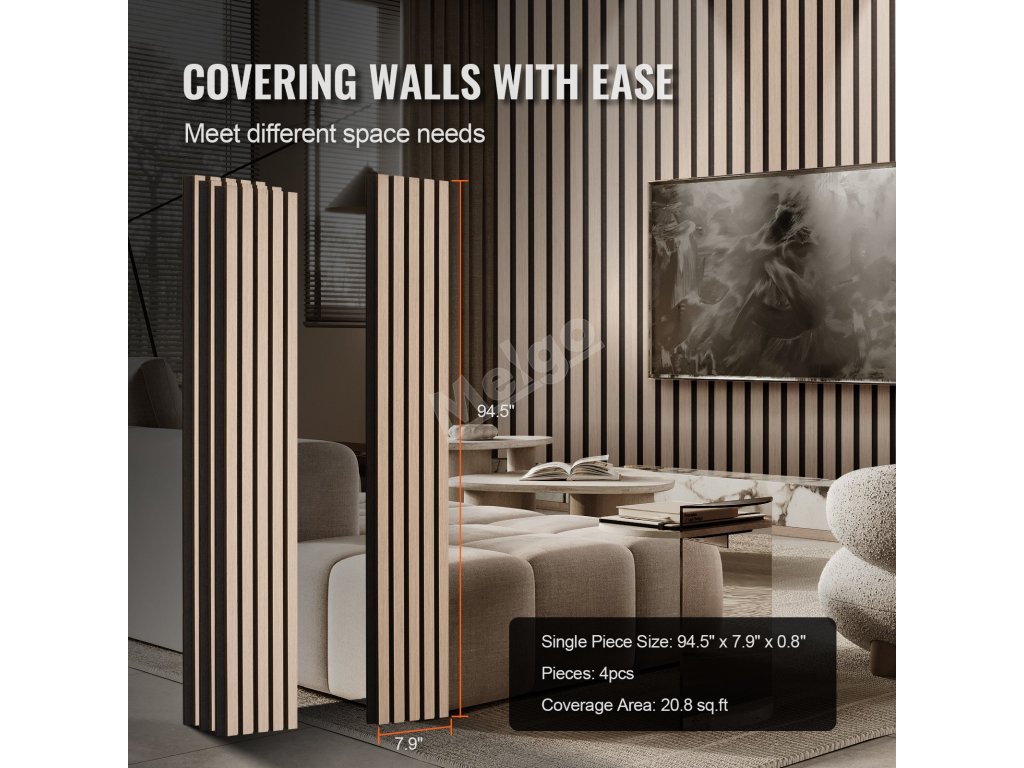 Akustické mdf lamelové panely na zeď 7.9×94.5 inch, imitace dřeva