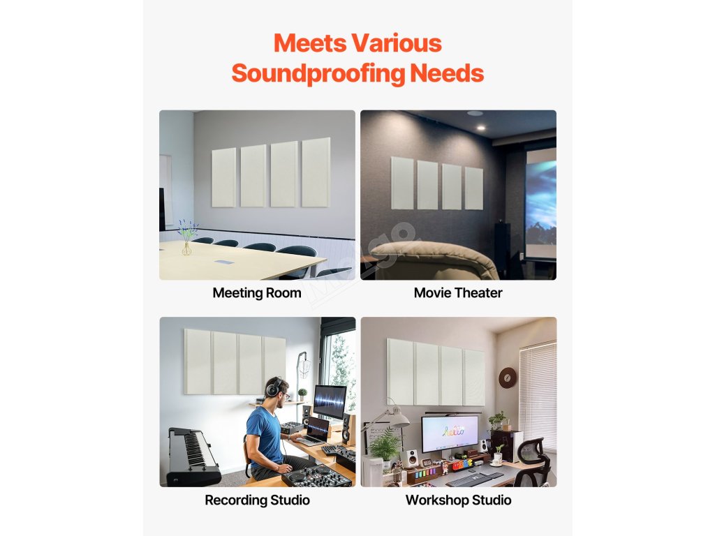 Akustické panely 4 ks, 2" silné, 23.6×11.8", samolepící, béžové