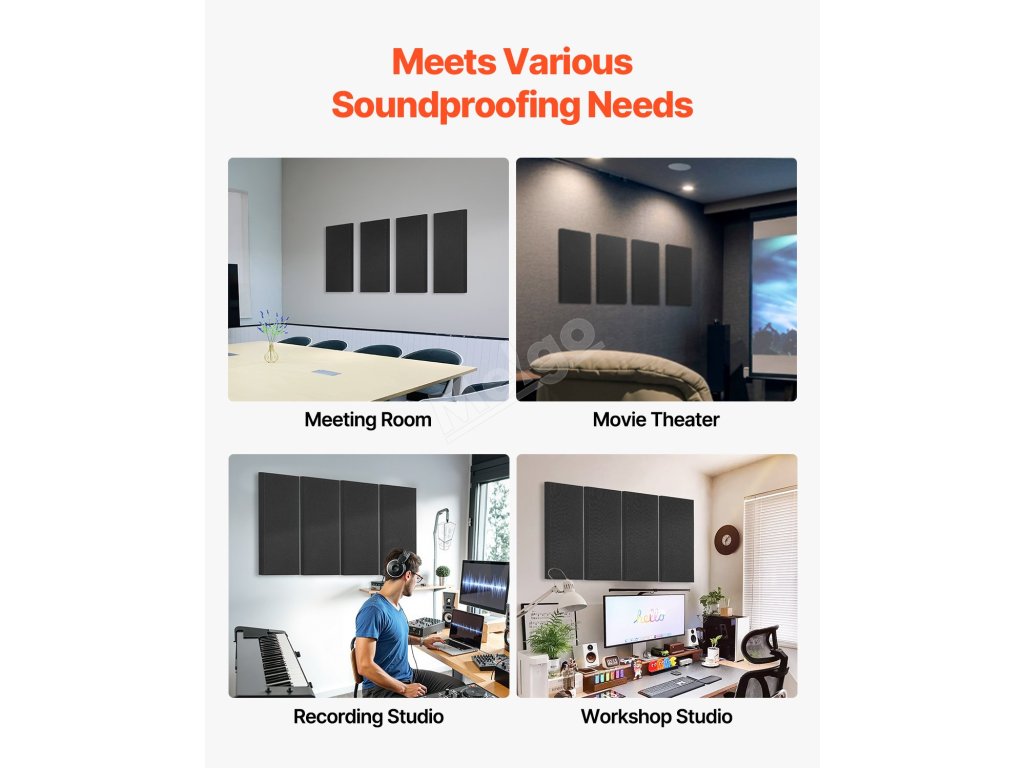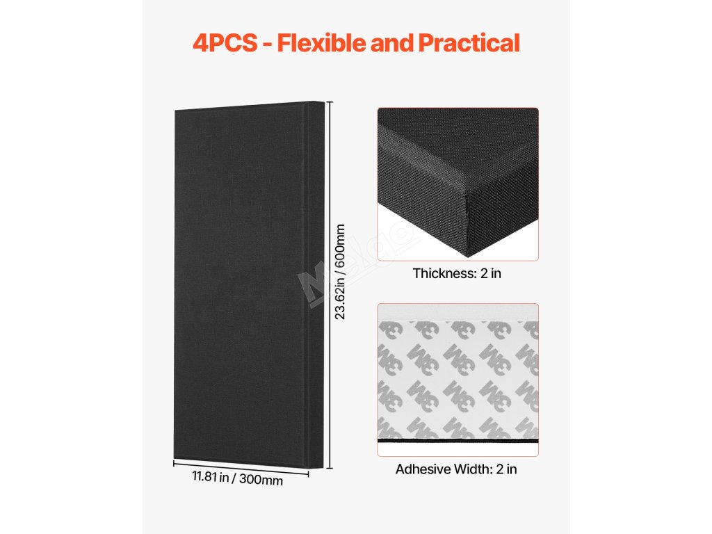 Akustické panely 4 ks, 2 inch silné, 23.6×11.8 inch, samolepící