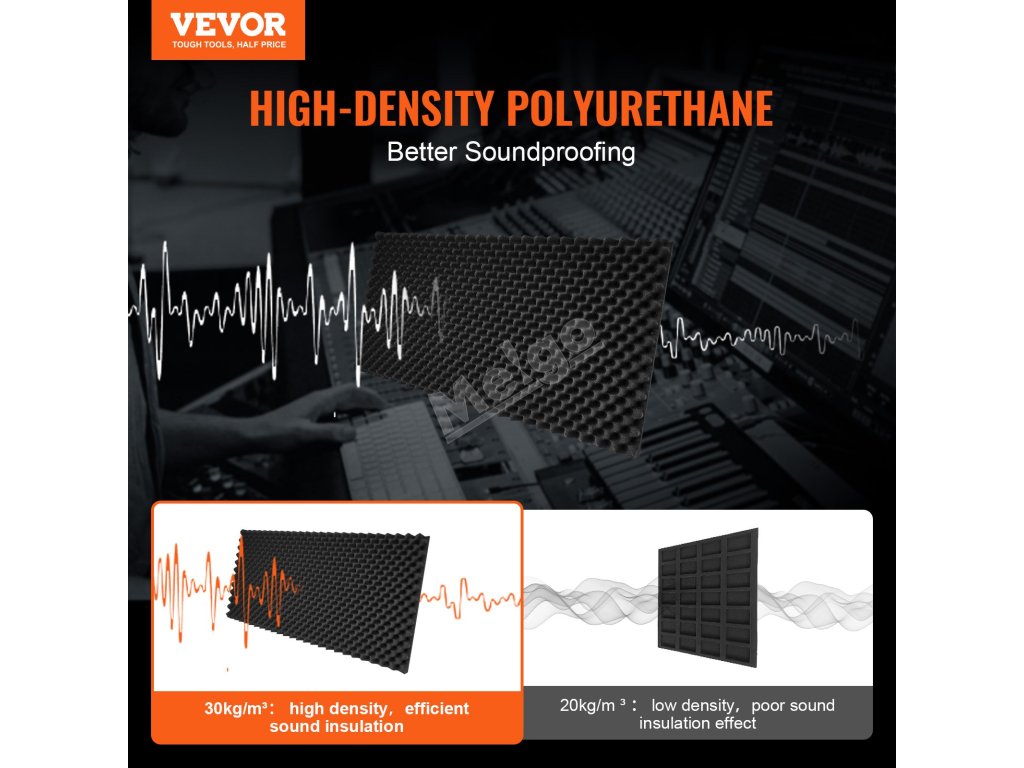 Táto akustická polyuretánová penová doska má hustú konštrukciu, ktorá pomáha znižovať hluk tým, že filtruje nežiaduce zvuky a ozvenu prostredníctvom viacnásobných odrazov. Pri použití v nahrávacích štúdiách zlepšuje kvalitu zvuku, vďaka čomu sú vokály príjemnejšie.