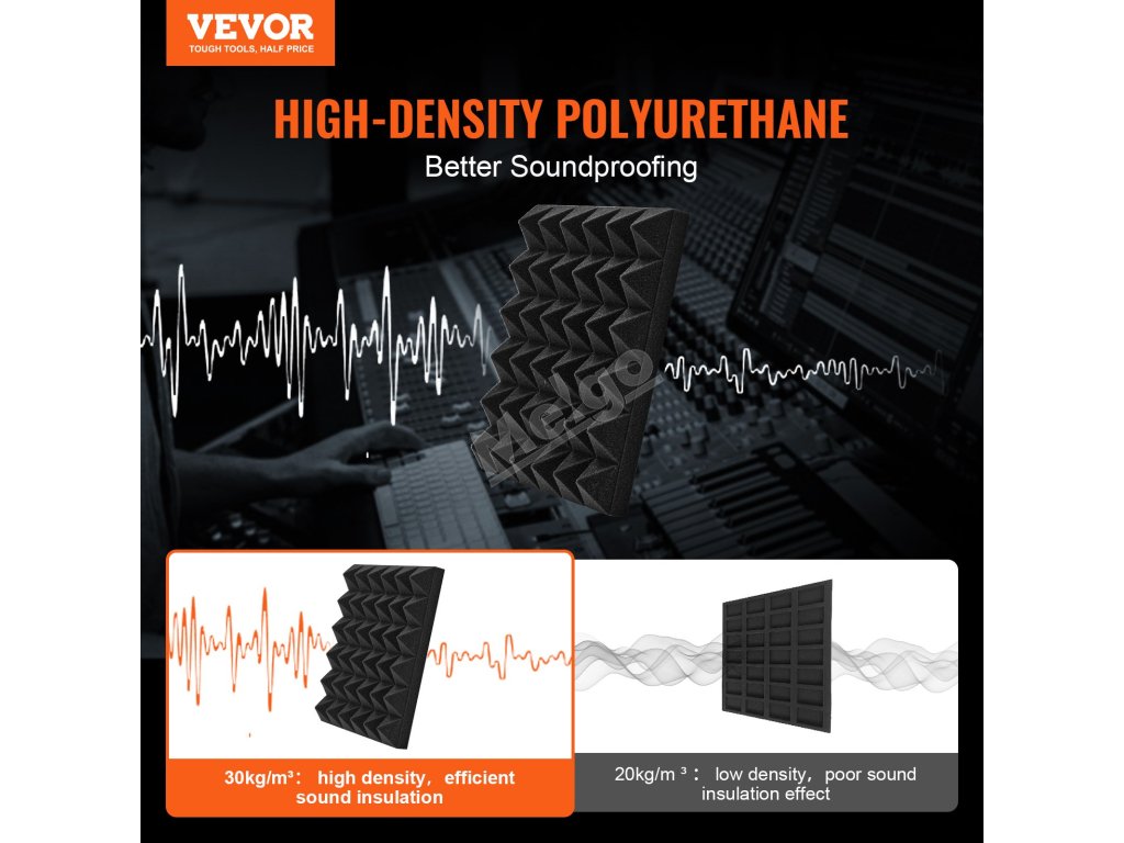 Táto akustická polyuretánová penová doska má hustú konštrukciu, ktorá pomáha znižovať hluk tým, že filtruje nežiaduce zvuky a ozvenu prostredníctvom viacnásobných odrazov. Pri použití v nahrávacích štúdiách zlepšuje kvalitu zvuku, vďaka čomu sú vokály príjemnejšie.