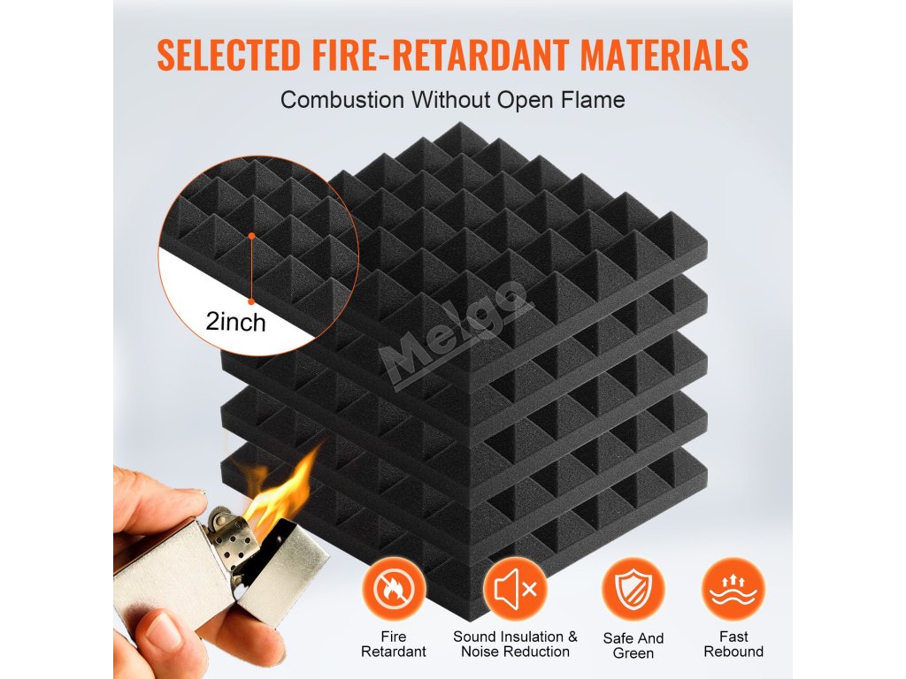 Táto akustická polyuretánová penová doska znižuje zvukové odrazy a ozvenu, čím zlepšuje akustiku miestnosti. S vysokou hustotou na účinnú absorpciu zvuku sa dodáva v tvare klinu, pyramídy a vajíčka a používa sa v nahrávacích štúdiách, domácich kinách a v rôznych iných prostrediach.