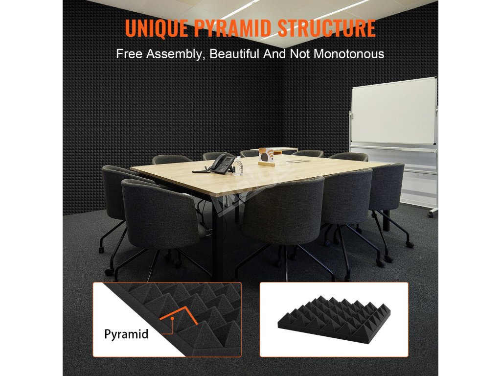 K dispozícii sú jedinečné tvary klinu, pyramídy a vajíčka, ktoré si môžete vybrať podľa svojho priestoru. Textúrovaný povrch zväčšuje plochu peny, čím účinne pohlcuje zvukové vlny na lepšiu zvukovú izoláciu.