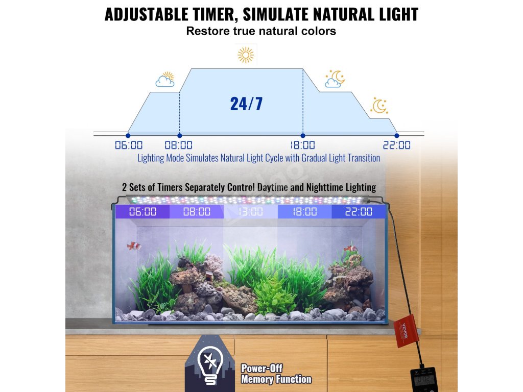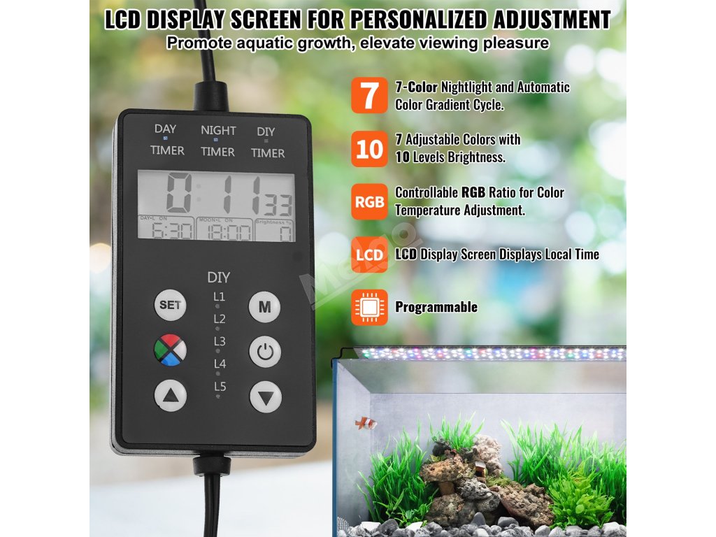 Akvarijné led svetlo 22W, plné spektrum, lcd, časovač, 24"–30"