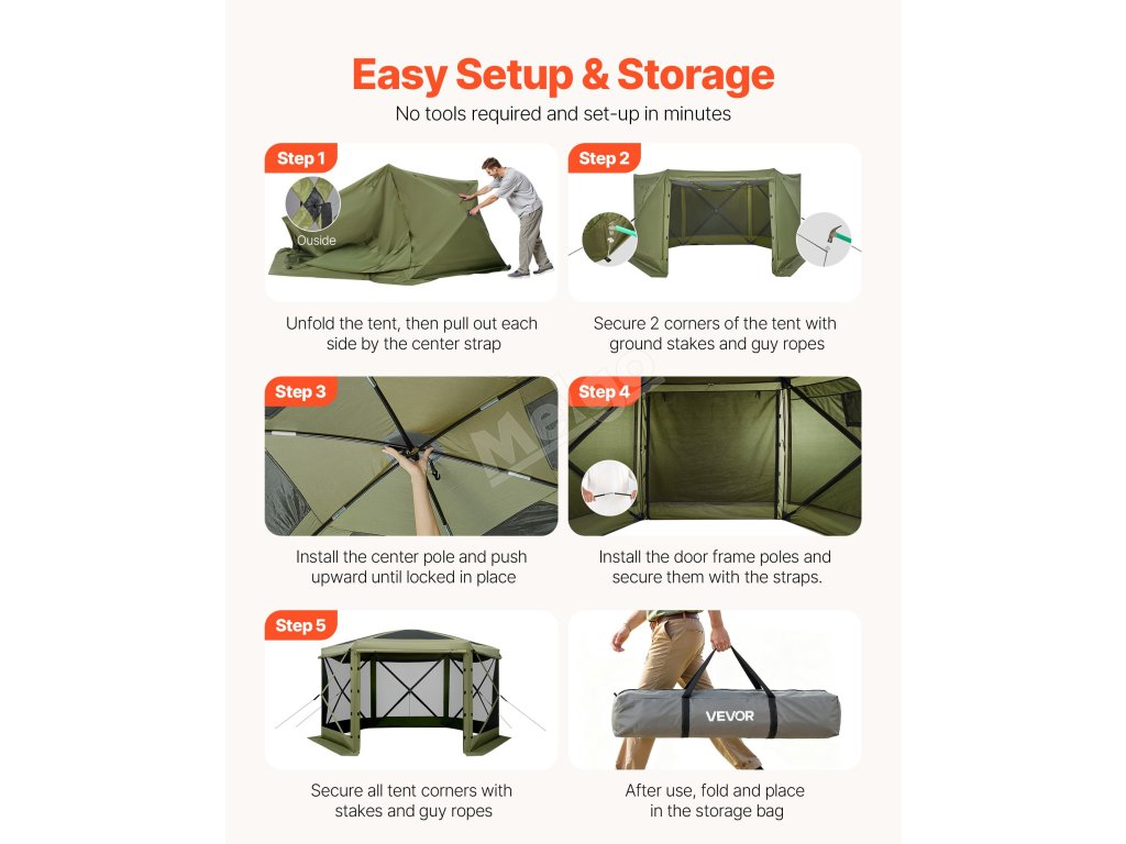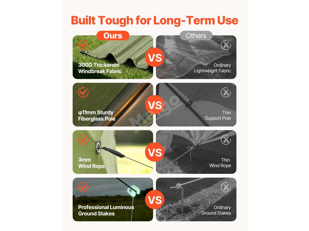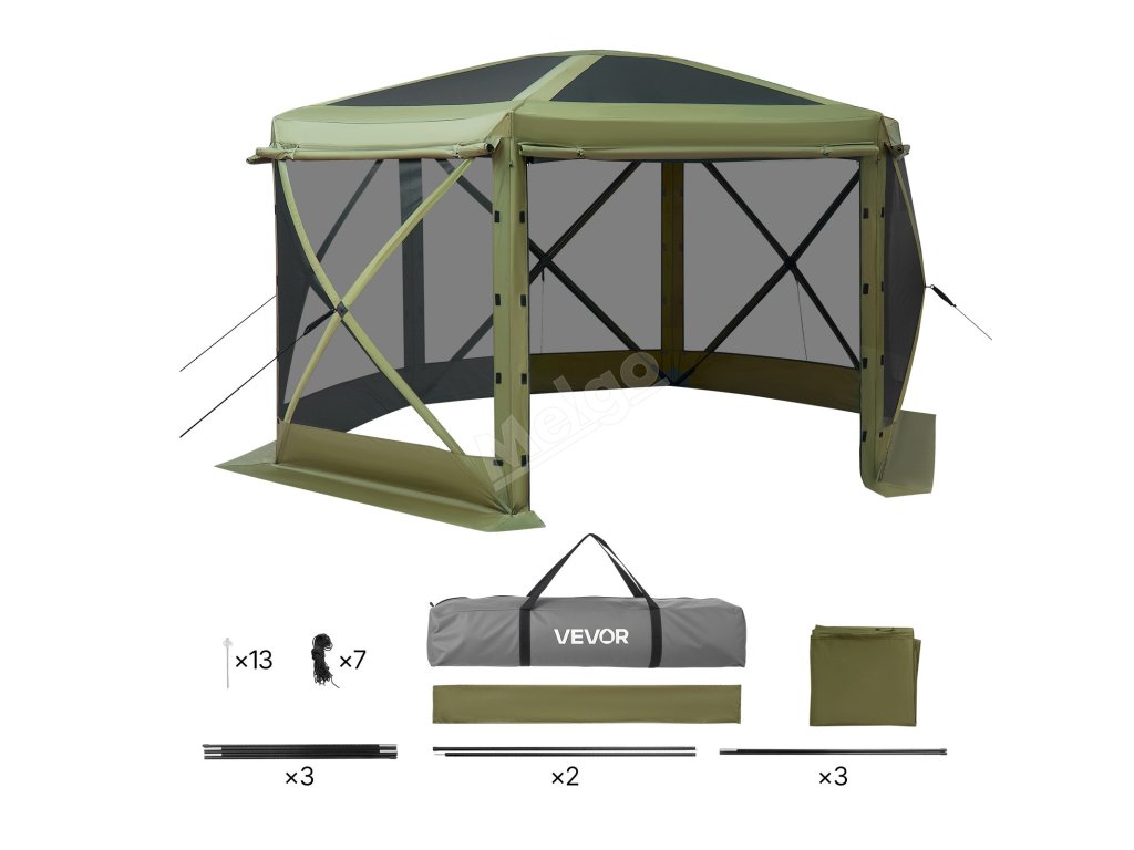 | Materiál | 70G sieťovina + zosilnená 300D oxfordská tkanina s PU povlakom + strieborná strieška + nosné tyče zo sklenených vlákien |