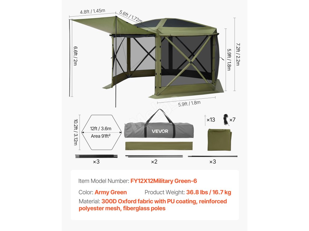 | Rozmery výrobku | 12 × 12 × 7,2 ft / 3,6 × 3,6 × 2,2 m |