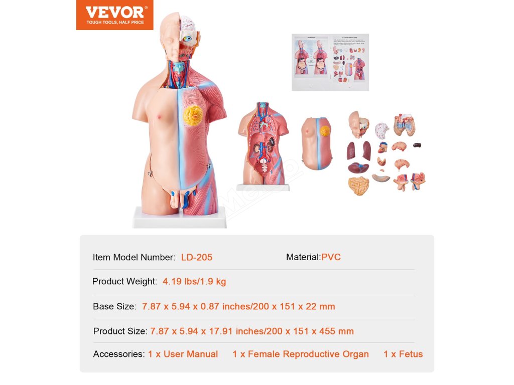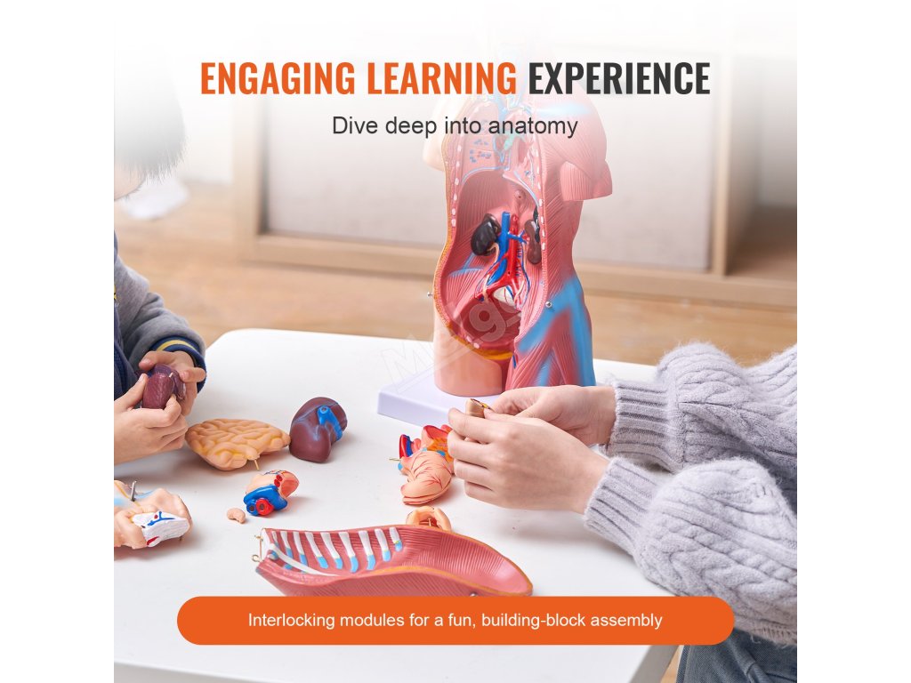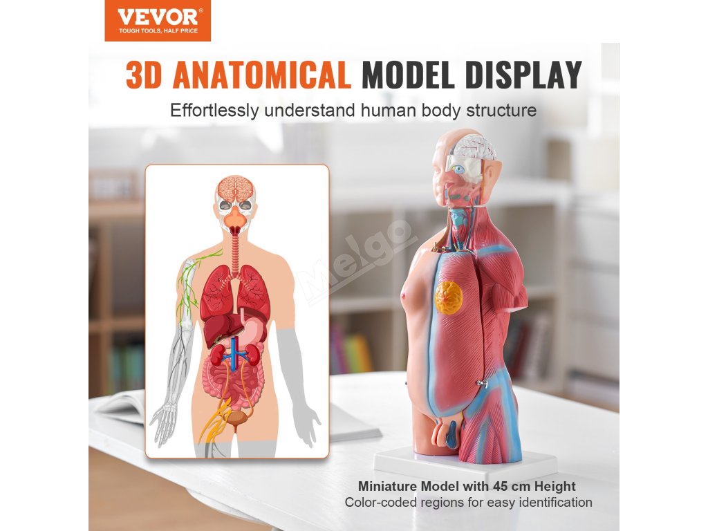 Náš model anatomie lidského trupu je navržen tak, aby byl pohodlný a praktický. Je snadno odnímatelný a umožňuje studentům prakticky se seznámit s anatomií a snadno pochopit funkce orgánů.