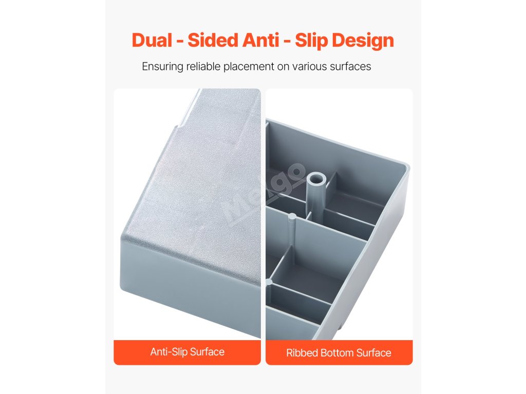 Tento výrobek s oboustrannou protiskluzovou konstrukcí zajišťuje dodatečnou stabilitu a bezpečnost, zvyšuje tření se zemí nebo jinými povrchy a zabraňuje tak uklouznutí nebo převrácení při manipulaci nebo používání.