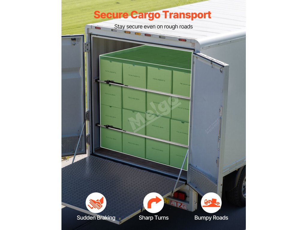 Už žádné starosti s přesouváním nákladu! Dvoudílné nosné tyče VEVOR s ráčnou pevně zajistí náklad na místě a zabrání jeho posunutí, převrácení nebo kolizi způsobené náhlým zastavením, ostrými zatáčkami nebo nerovnými cestami. Pomáhá minimalizovat riziko poškození a zajišťuje bezpečnější a stabilnější přepravu.