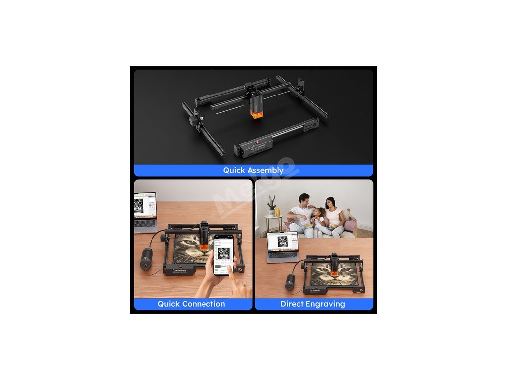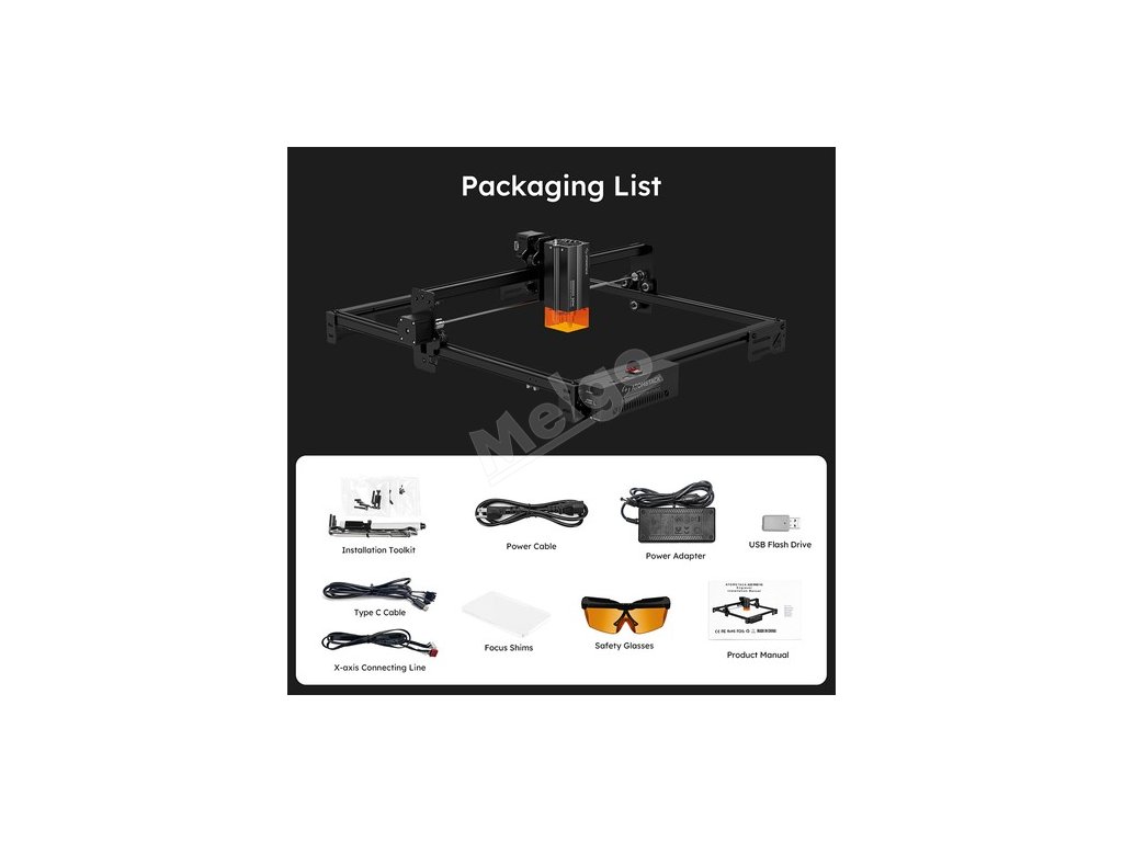 | Obsah balení | 1 x Laserový gravírovací stroj 1 x Sada instalačního nářadí 1 x napájecí kabel 1 x napájecí adaptér 1 x USB flash disk 1 x kabel typu C 1 x připojovací kabel osy X 1 x zaostřovací podložky 1 x ochranné brýle 1 x Návod k použití 1 x laserové lůžko H44 1 x rotační válec G3 Pro |