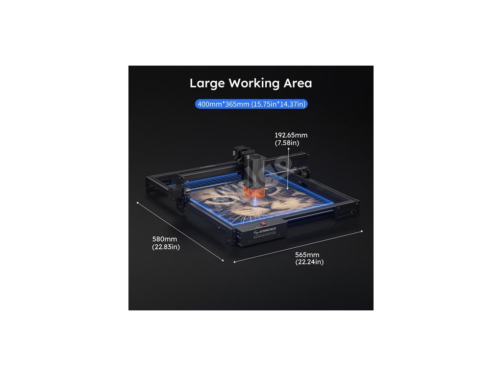 ATOMSTACK A20 Pro V2 je vybaven integrovanou konstrukcí lineárního vedení pohybu pro rychlou montáž a vysokou přesnost, což prodlužuje životnost stroje. Jeho rám z hliníkové slitiny a modulární konstrukce zvyšují odolnost a optimalizují pohyb laseru. Vestavěné koncové spínače a křížové světlo zajišťují přesnost gravírování 0,01 mm. Pro zajištění bezpečnosti obsahuje odnímatelný magnetický kryt, ochranné brýle a bezpečnostní zvukový signál úhlu náklonu (> 15°)