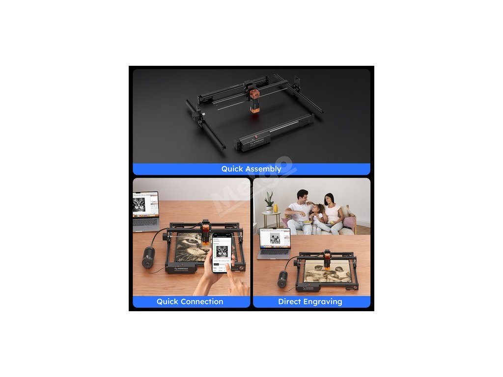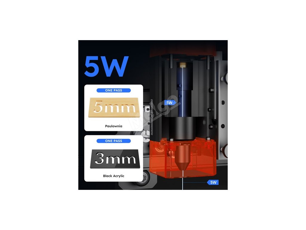 Tento laserový gravírovací stroj, který dokáže na jeden průchod proříznout 5 mm dřeva a 3 mm černého akrylátu, poskytuje výsledky na profesionální úrovni pro amatérské i profesionální uživatele.