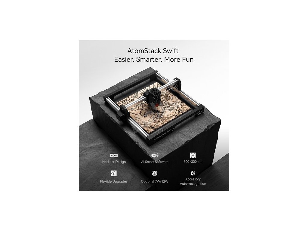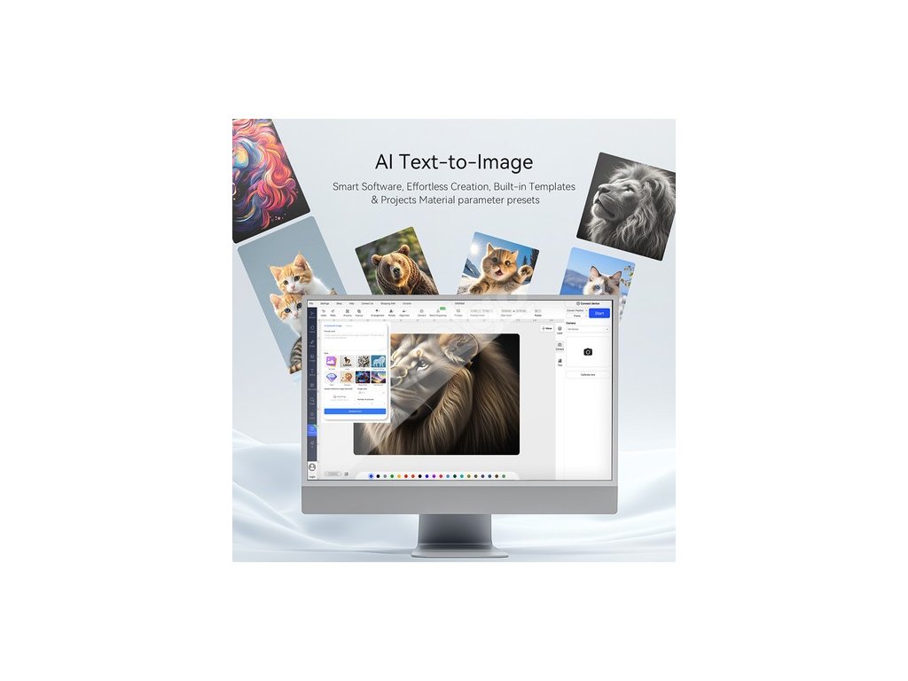 Systém je vybaven nejnovějším inteligentním softwarem AtomStack a nabízí generování obrázků pomocí umělé inteligence, které okamžitě mění text na návrhy. Vestavěná knihovna materiálů a projektů poskytuje bohaté šablony pro rychlou tvorbu, zatímco přednastavená nastavení parametrů optimalizují výsledky gravírování pro běžné materiály. Stroj dokáže automaticky detekovat příslušenství, jako je rotační nebo upínací modul, a přepnout na příslušný režim obrábění, čímž zvyšuje efektivitu a usnadňuje obsluhu.