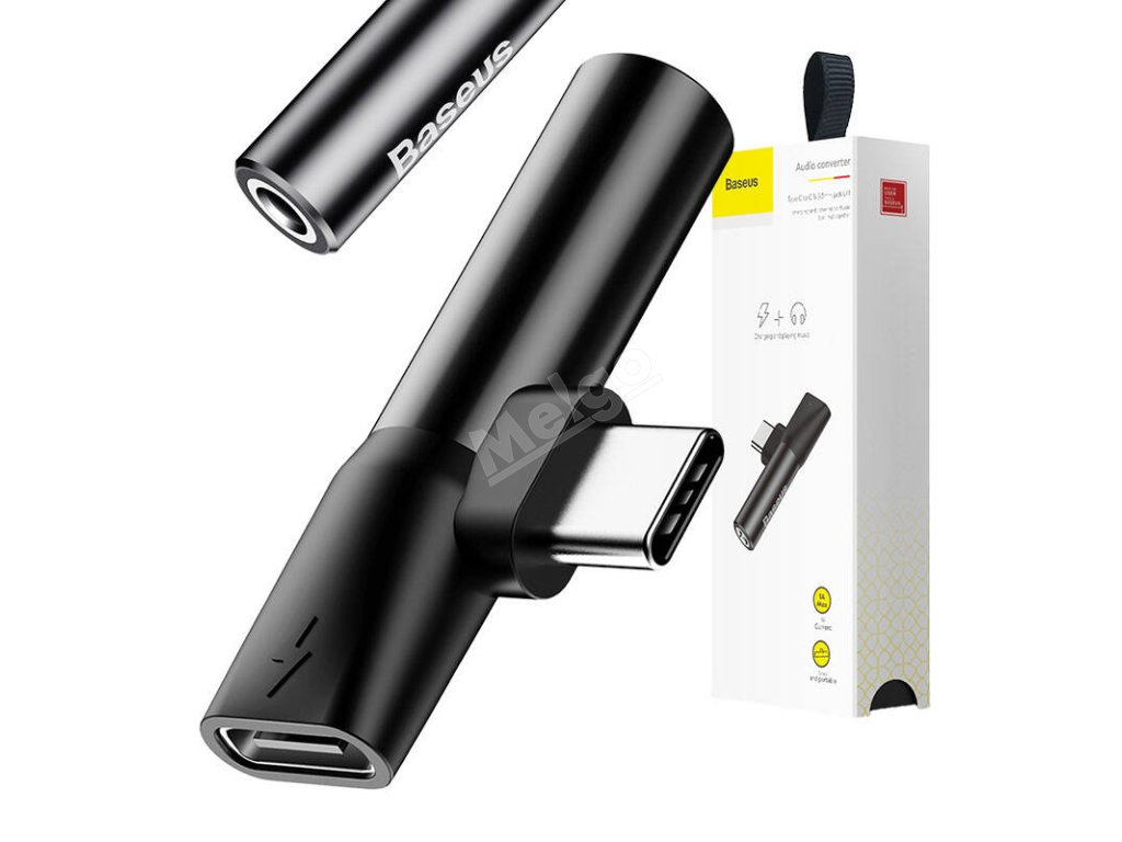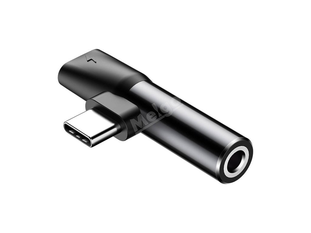 Audio adaptér Baseus USB-C na mini jack 3,5mm + USB-C (černý)