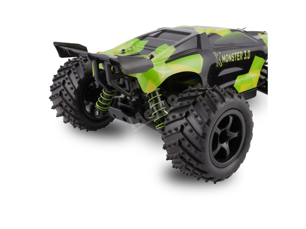 X-Monster 3.0 je spolehlivý RC auto . Vyznačuje se mimořádně velkou konstrukcí,vynikající manévrovatelnost a efektivní zpracování. Odolná baterie a dlouhý dosah až sto metrů zajišťují skvělou zábavu na dlouhou dobu a účast na velkolepých rallye. Je lídrem ve své kategorii. Olejové odpružení přizpůsobené většině typů povrchů a nezávislé pohon 4x4 udělejte z X-Monstera své oblíbené RC auto.