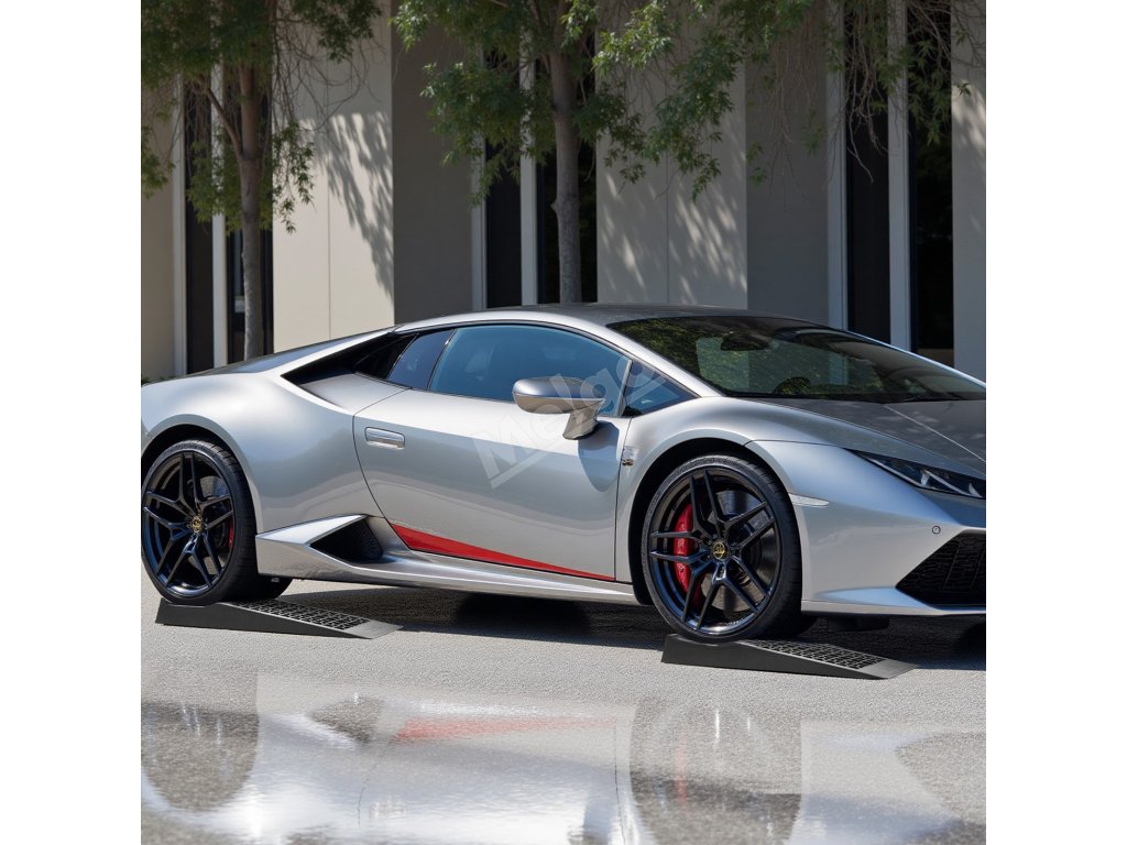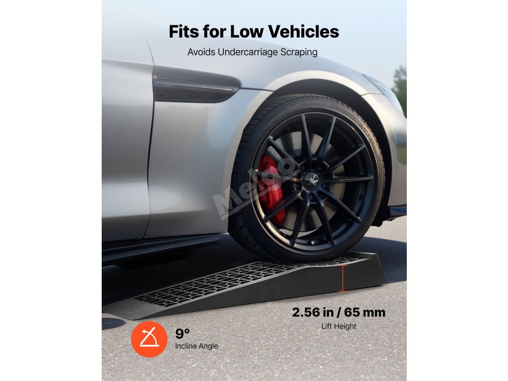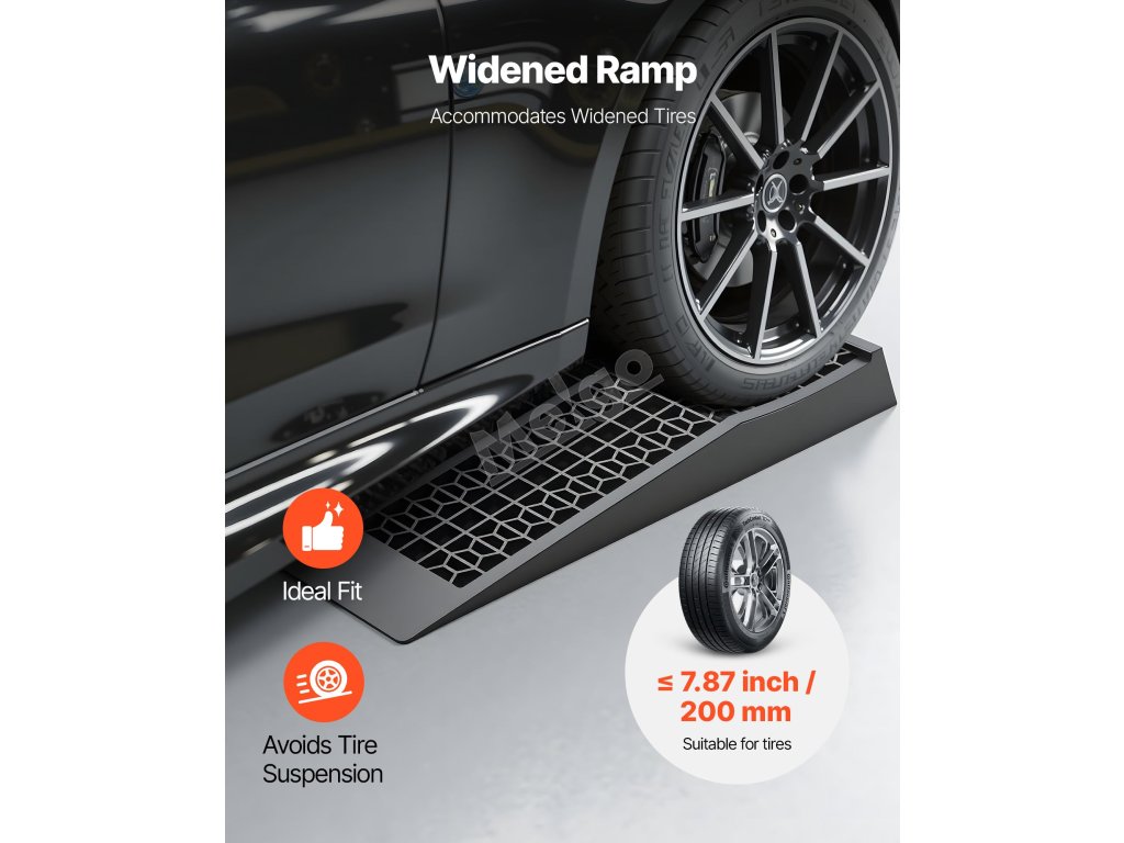 Povrch zvedací rampy pro automobily má hluboké drážky, které se přizpůsobují křivkám pneumatik a pevně je drží na místě. Tato konstrukce minimalizuje prokluzování a zabraňuje poškození pneumatik.